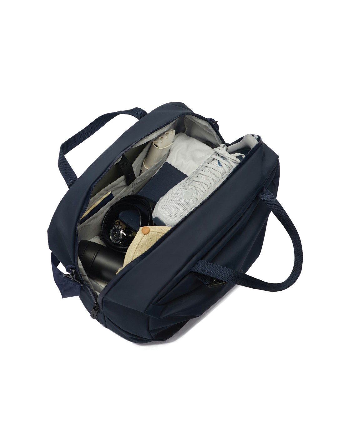 Ampia borsa weekend, perfetta per viaggi o escursioni brevi. Si presenta in un design classico e senza tempo in similpelle scamosciata ed è decorata con dettagli in ottone. Un ottimo e facile compagno di viaggio per i giorni in cui sei costantemente in movimento.