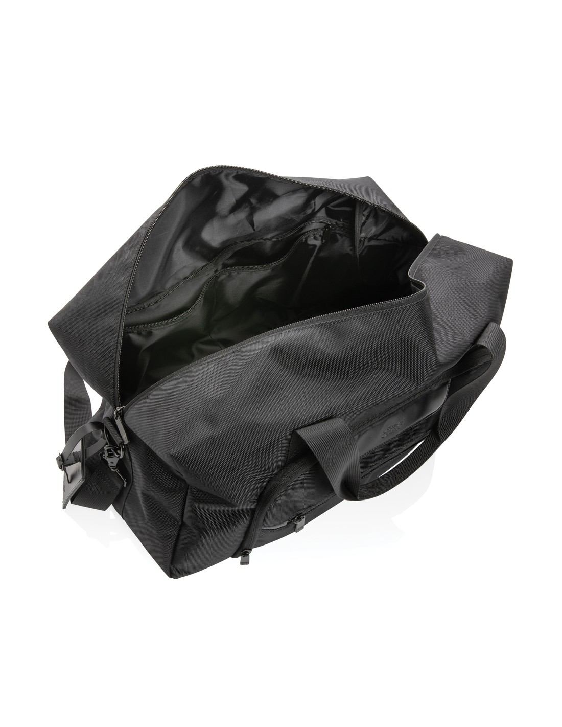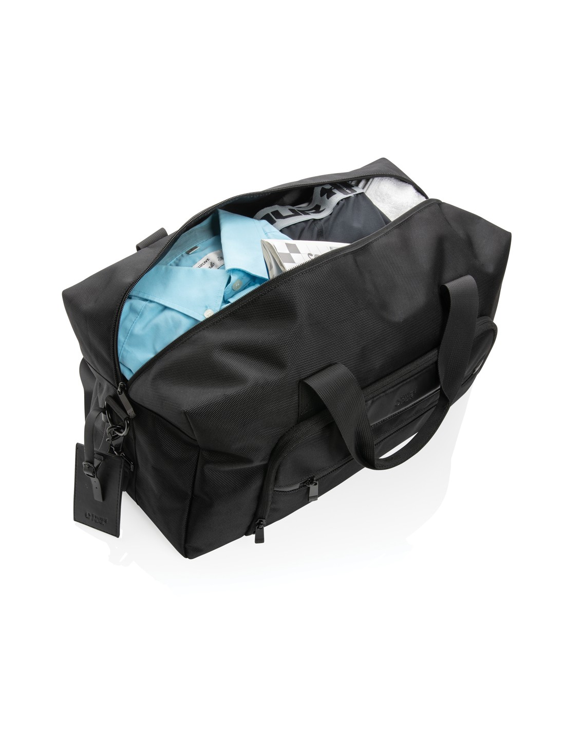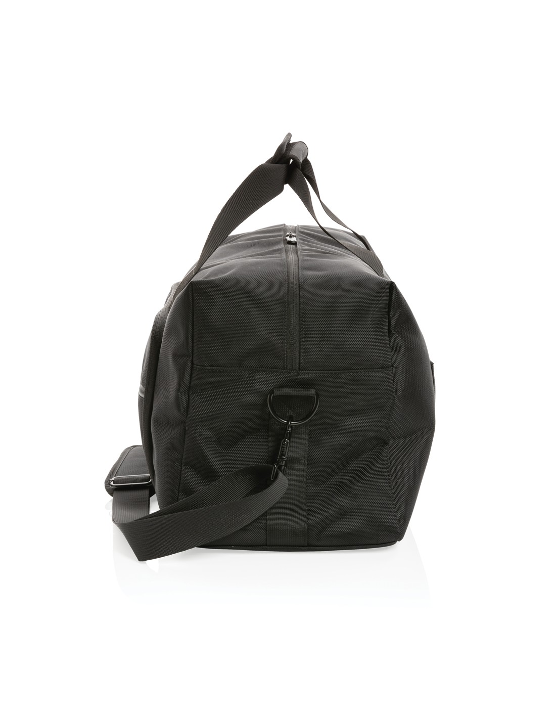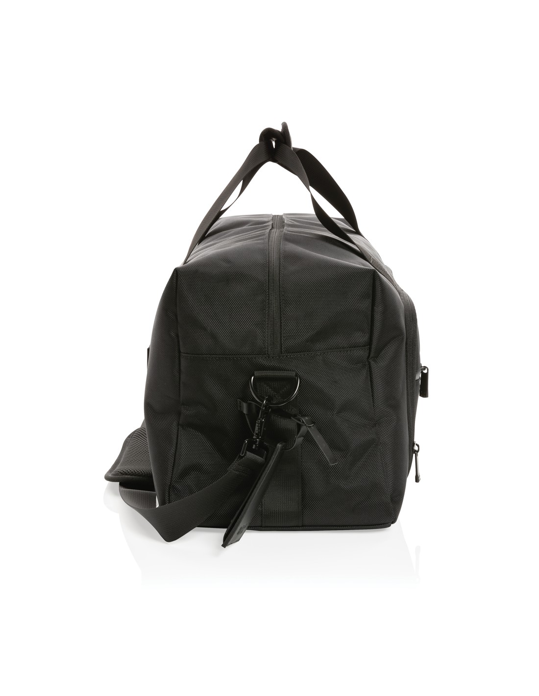 Borsa da weekend in tela da 450 gr/m² con dettagli in PU riciclato. La fodera è in RPET 210D. Cinghie robuste regolabili e removibili incluse. Dimensioni perfette per il bagaglio a mano.