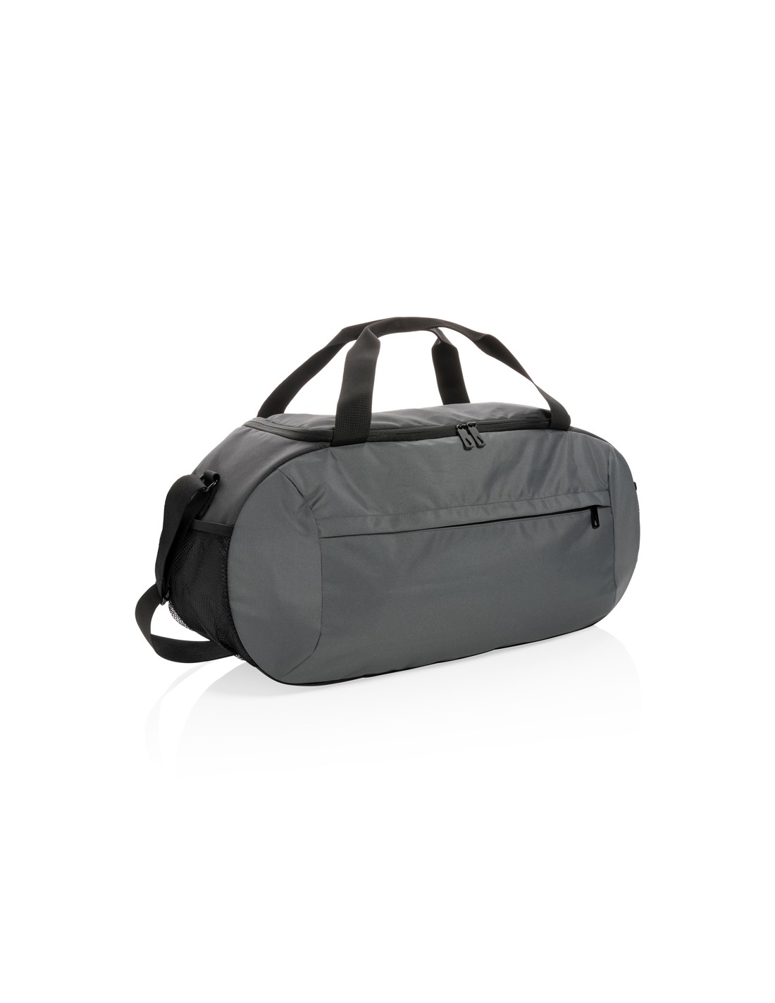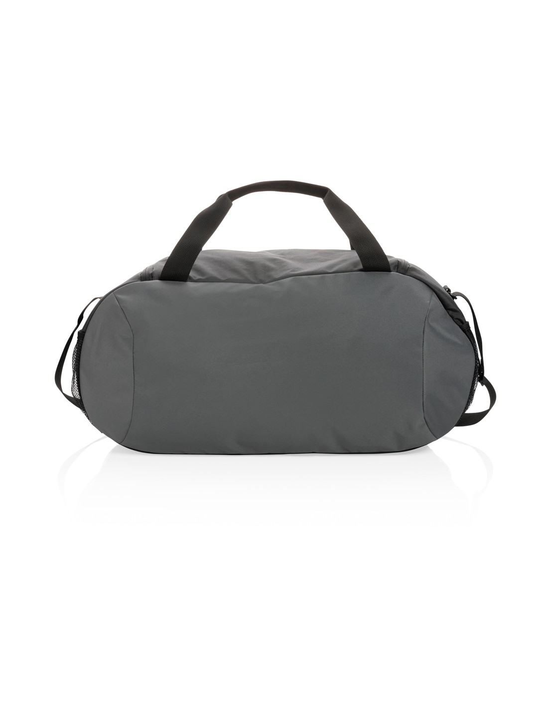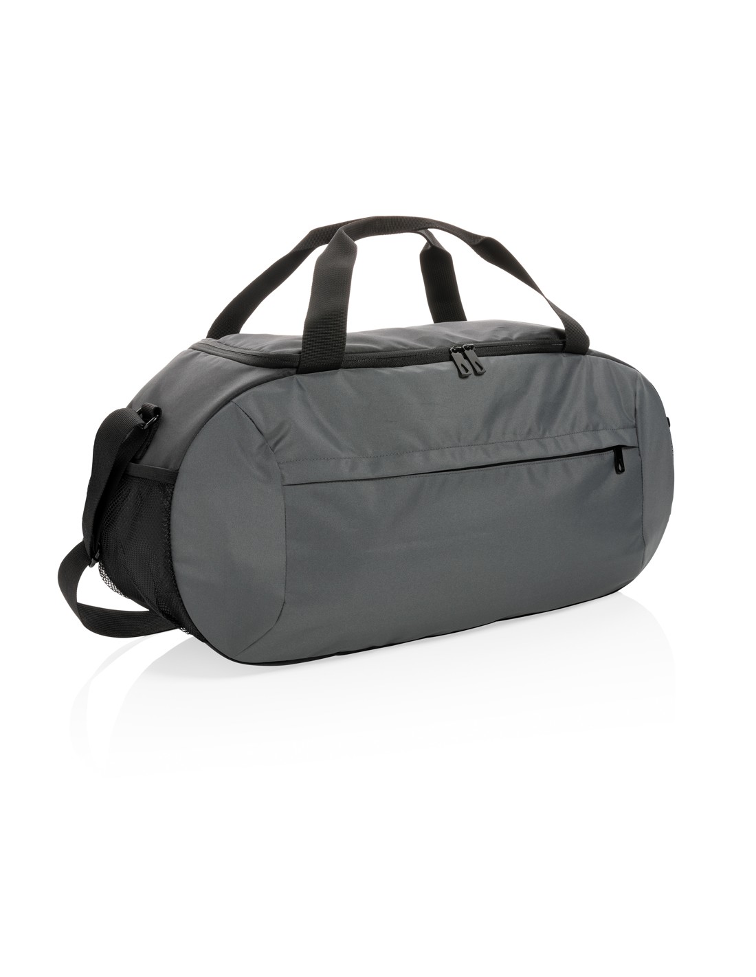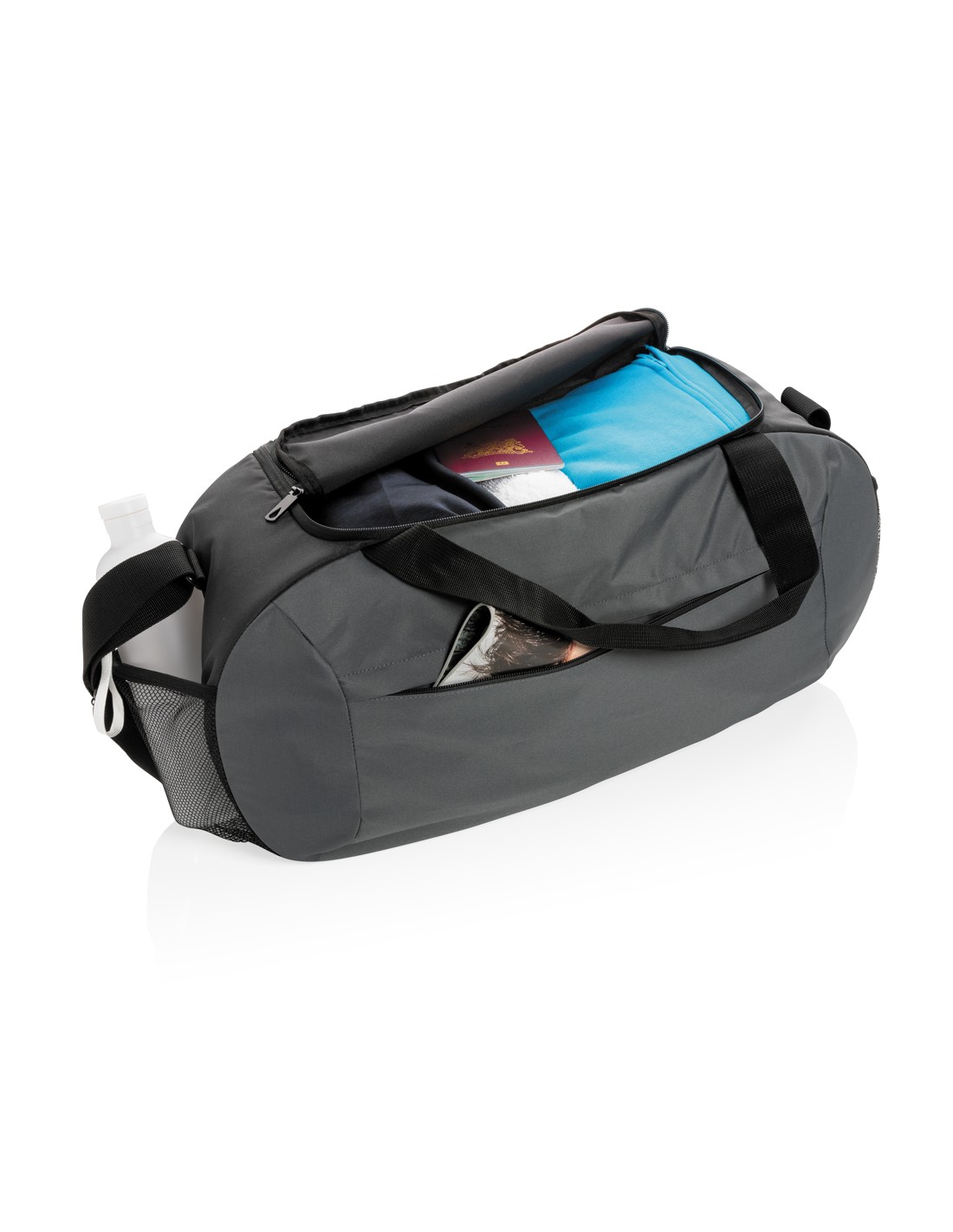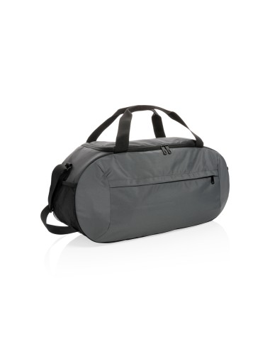 Ampia borsa da viaggio con chiusura a doppia zip. In microfibra con doppio manico in PVC.