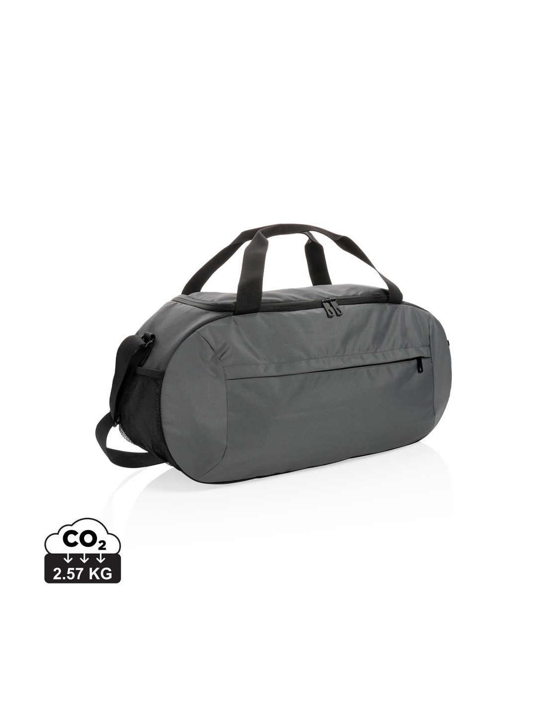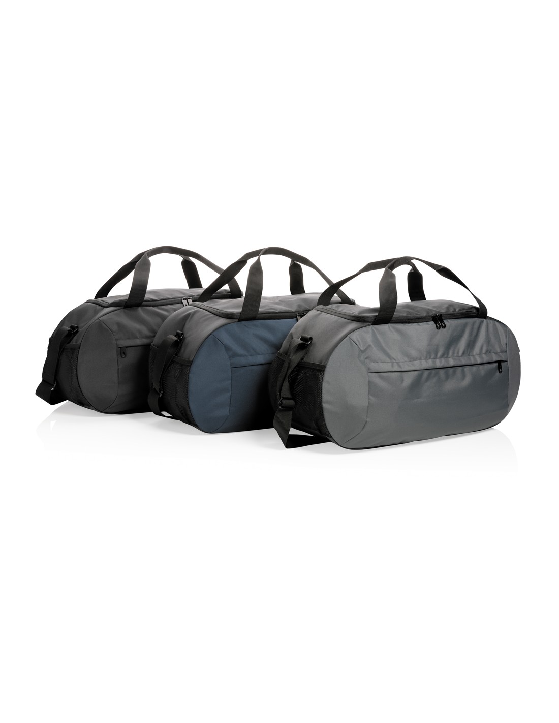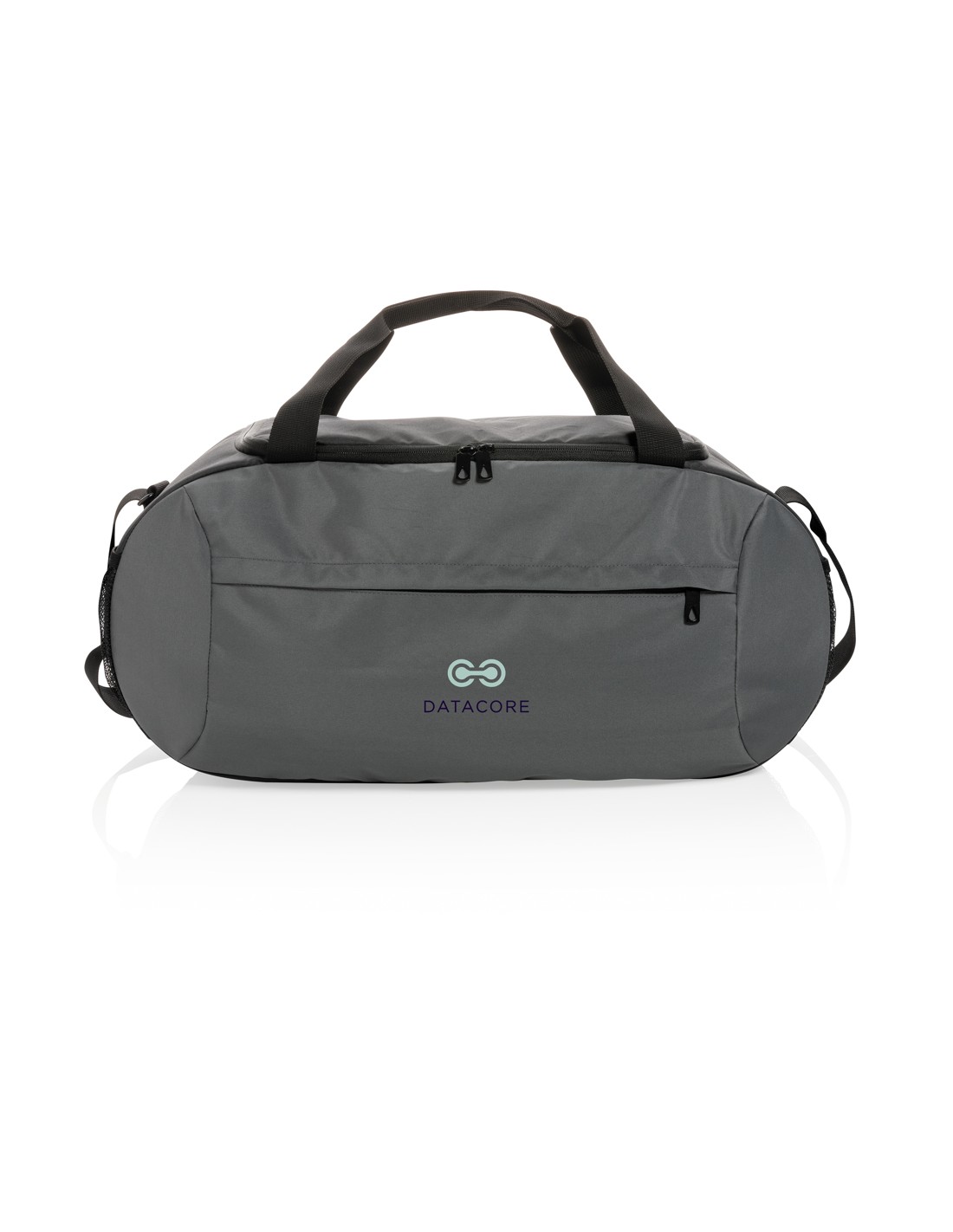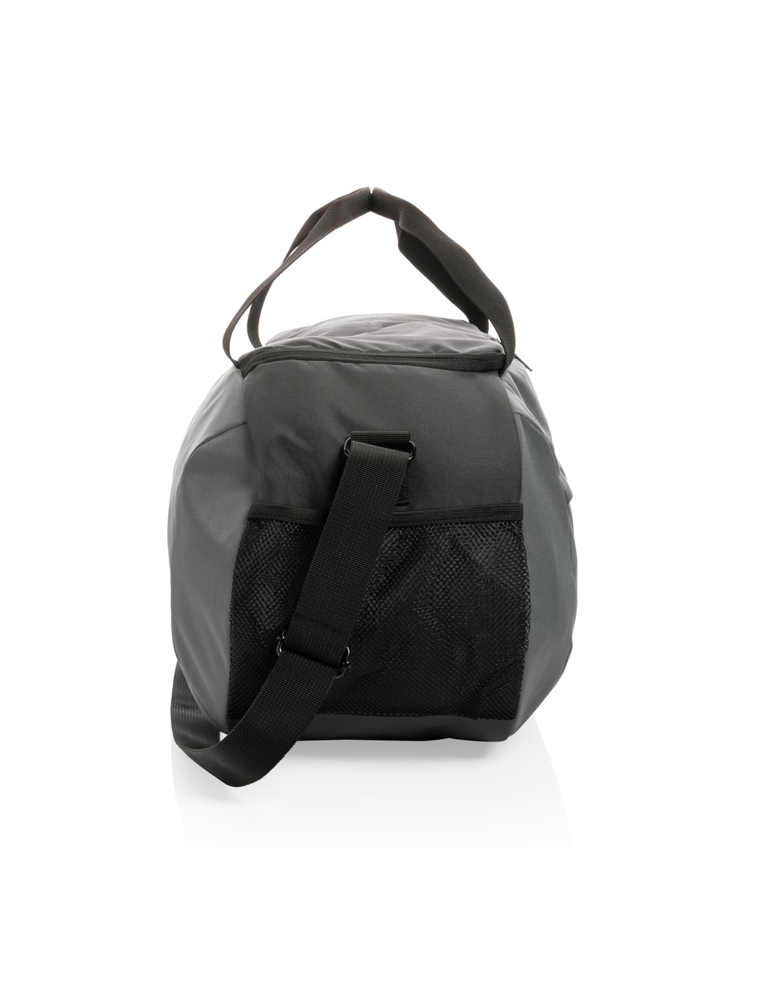 Ampia borsa da viaggio con chiusura a doppia zip. In microfibra con doppio manico in PVC.