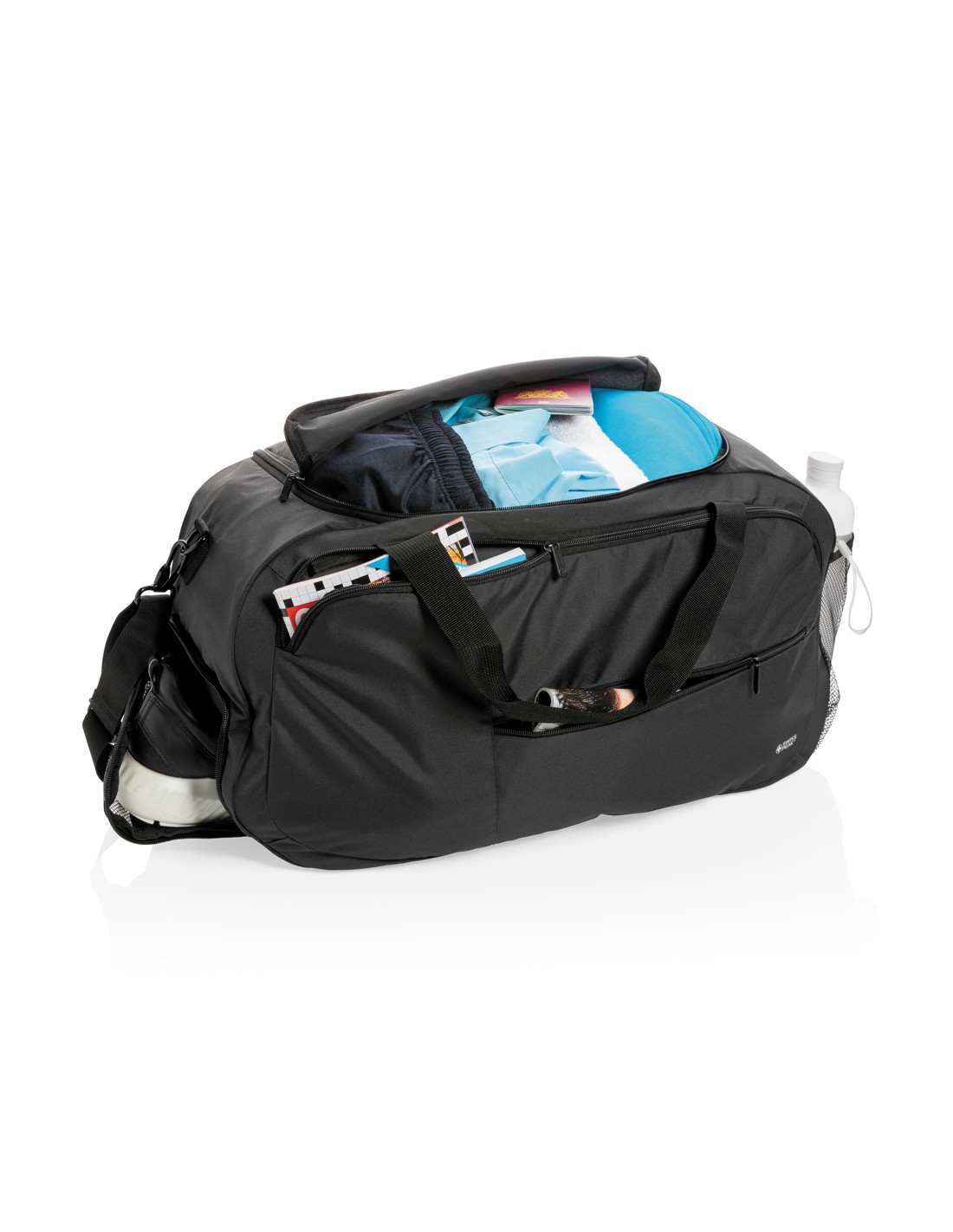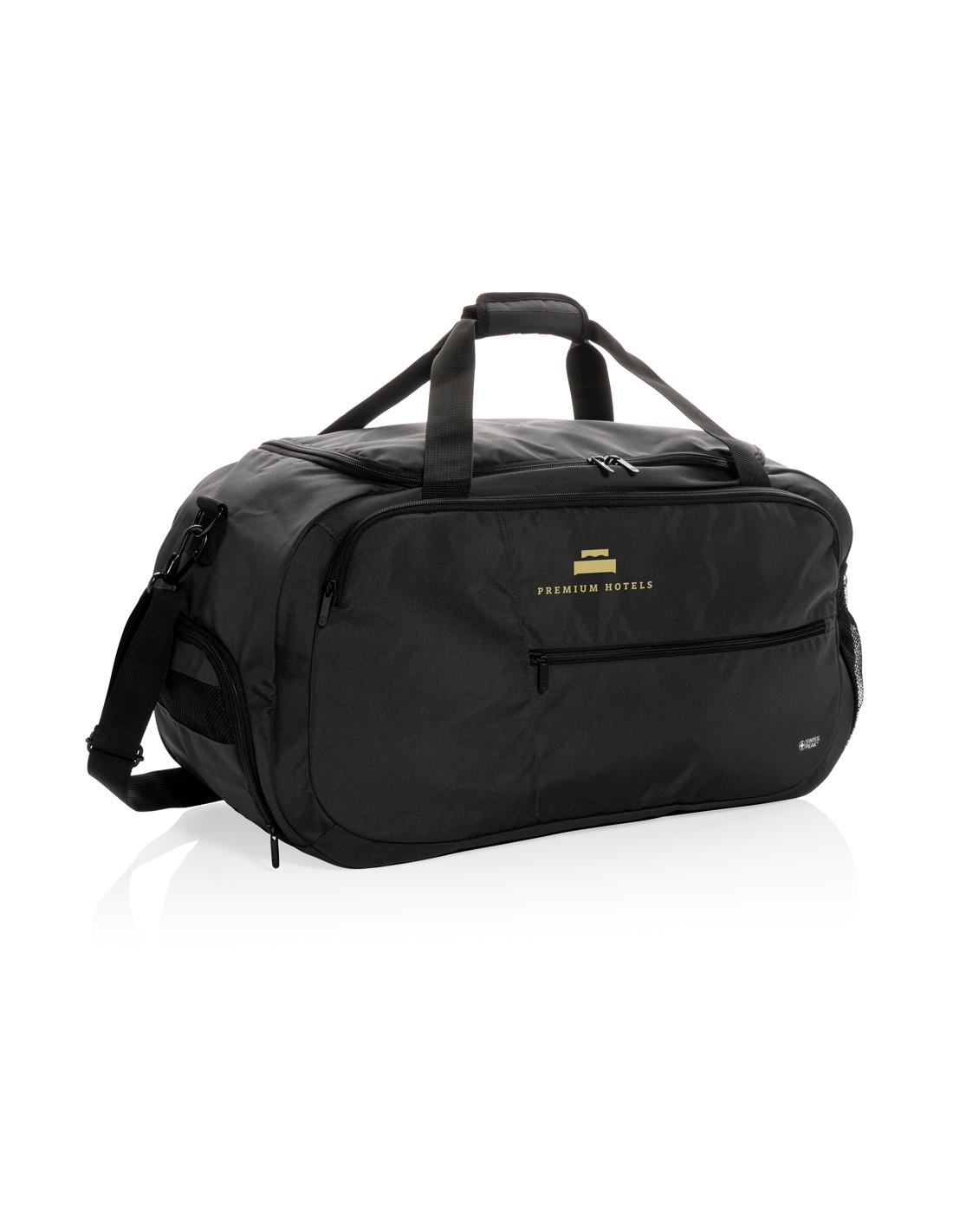 Viaggiate con stile con la borsa da weekend Marlow, realizzata in rPET certificato RCS. Rimanete organizzati in viaggio grazie a questa borsa per il weekend progettata per un fine settimana di 2-3 giorni o per un viaggio di lavoro. Dispone di una tasca interna e di una tasca esterna con cerniera....