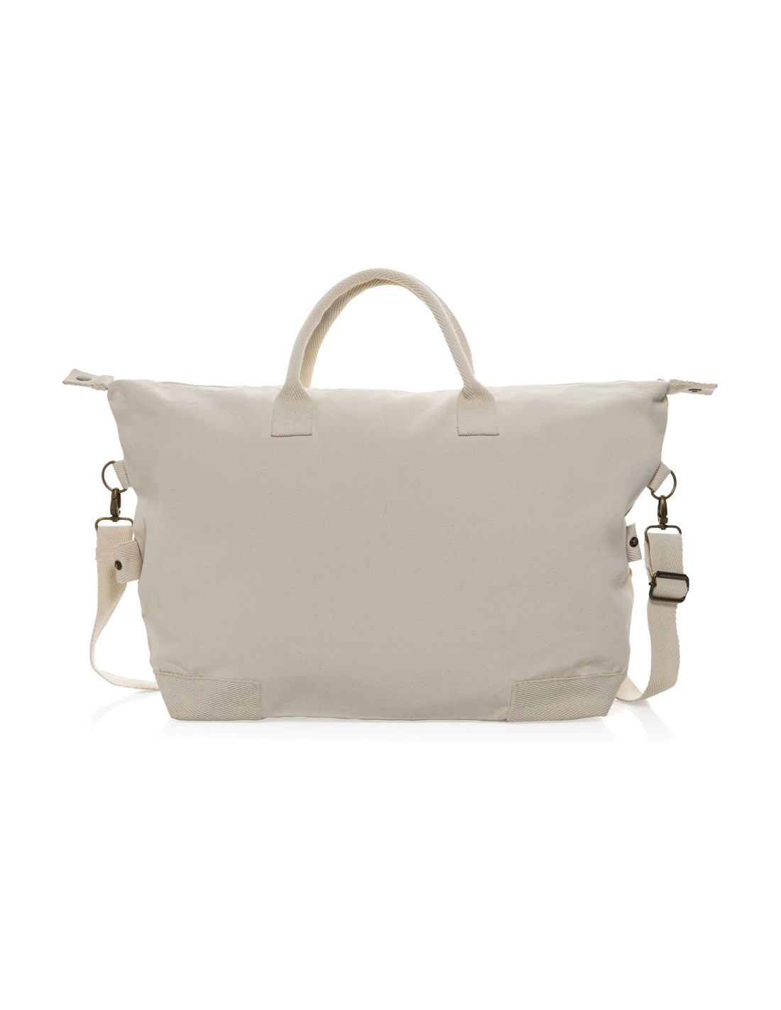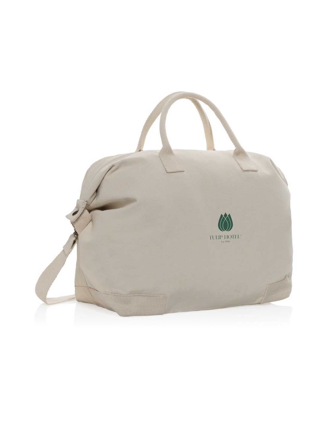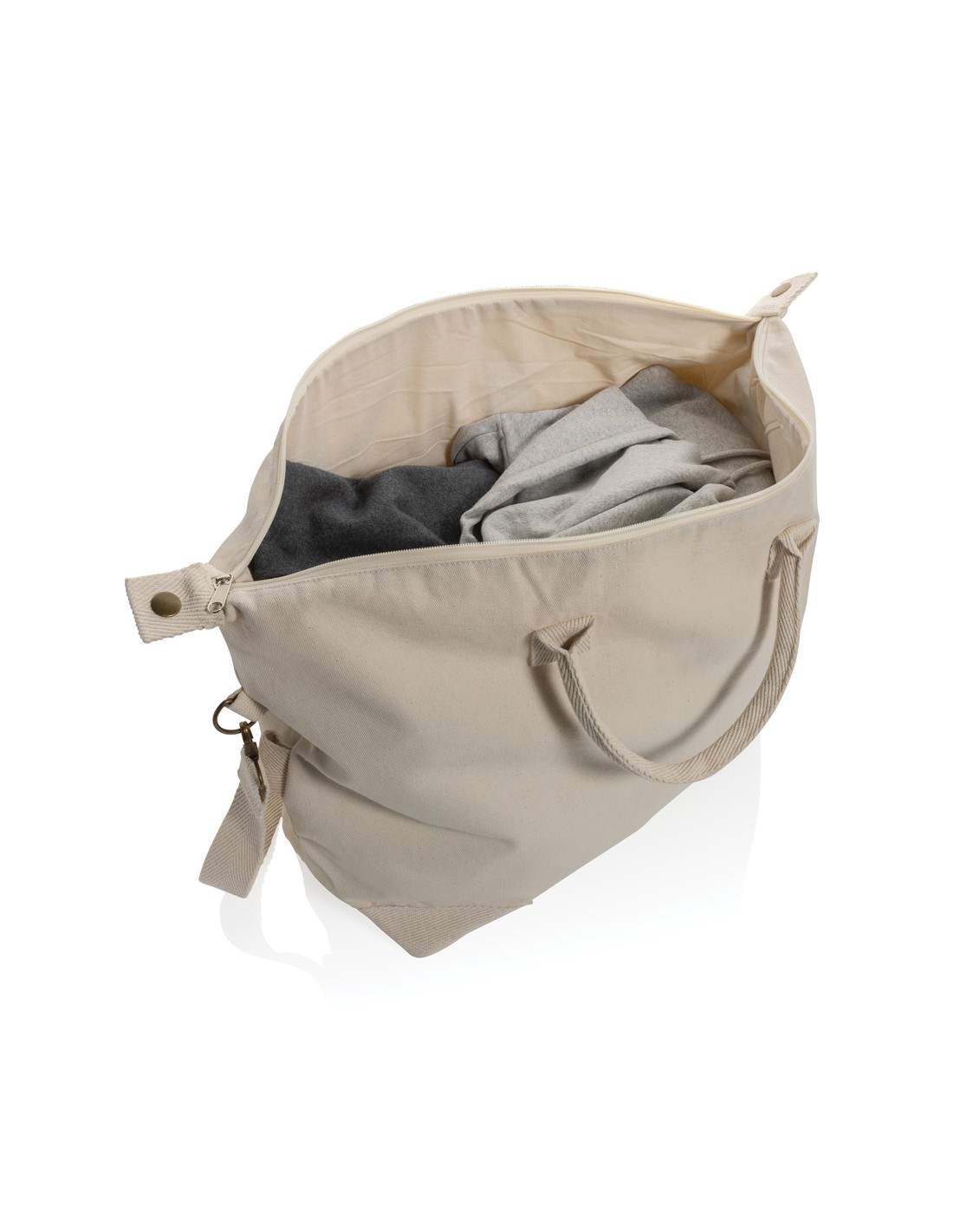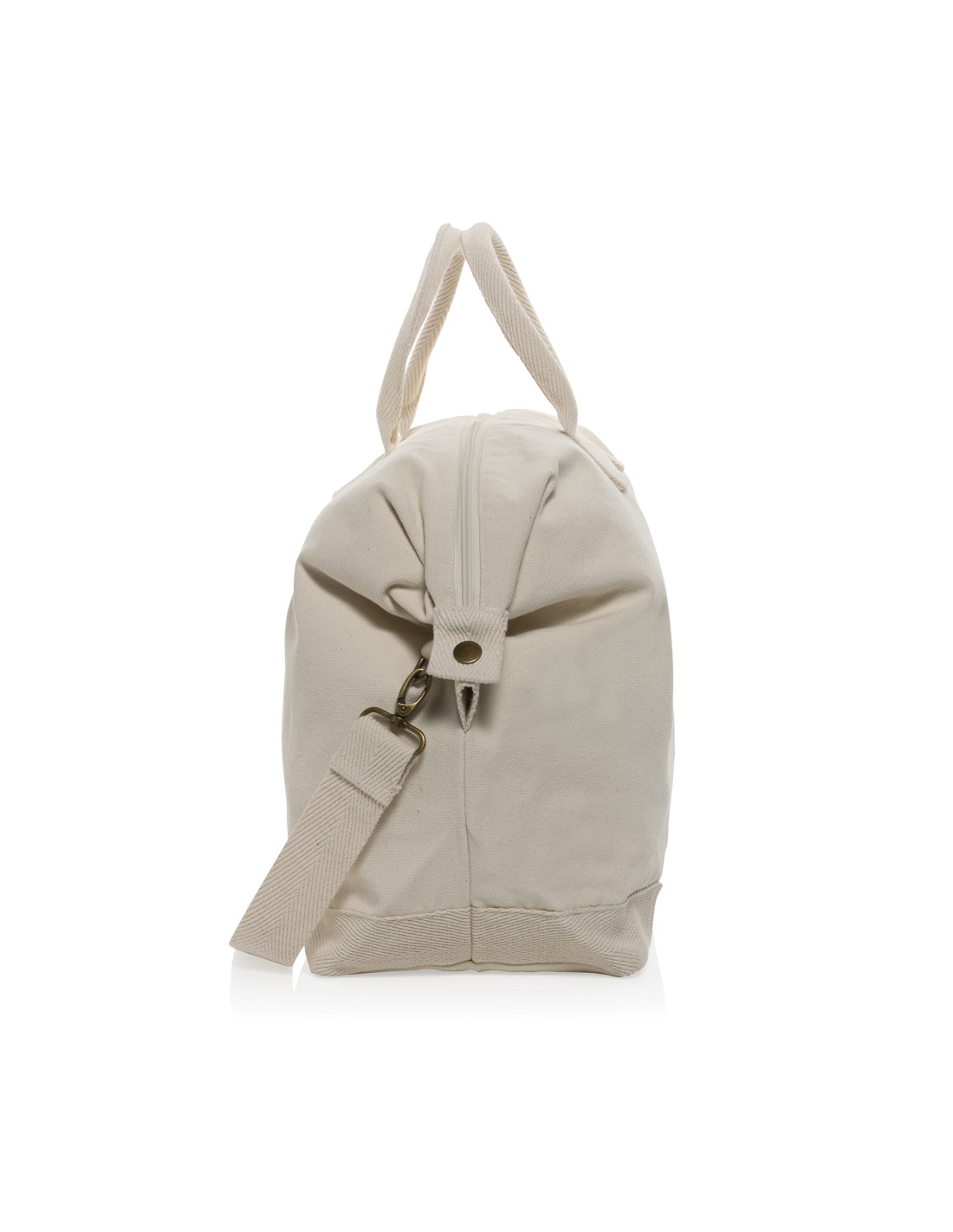 Questa borsa weekend deluxe è una soluzione elegante e a basso impatto, realizzata in tela di cotone riciclato da 500 g/m². Presenta splendidi dettagli, finiture in ottone e uno spazioso scomparto principale. Perfetta per chi cerca una borsa da viaggio di alta qualità e a basso impatto. Con tracciante AWARE™ che convalida l'uso reale di cotone riciclato. Il 2% del ricavato di ogni prodotto Impact venduto sarà devoluto a Water.org.