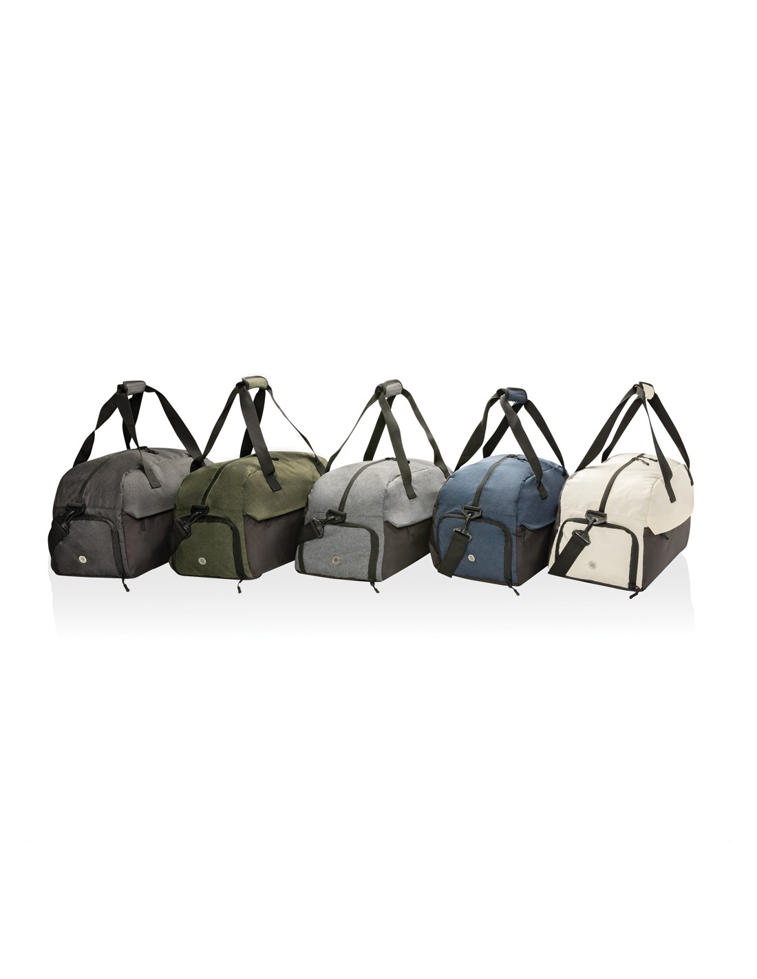 La borsa da viaggio in formato grande Ayla con stampa a sublimazione è realizzata in poliestere riciclato al 100% ed è disponibile con cerniera di colore bianco o nero. Prodotta in Europa.