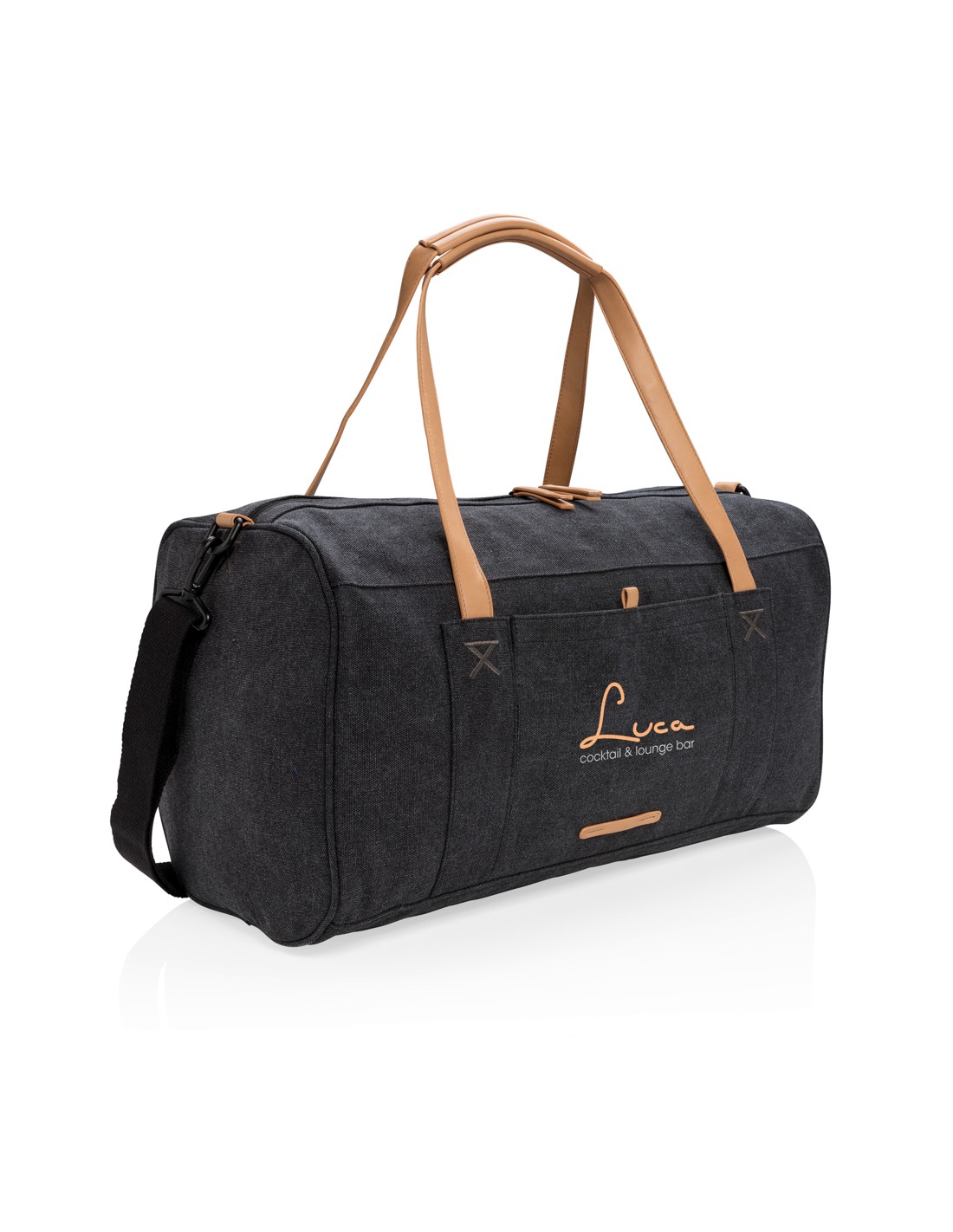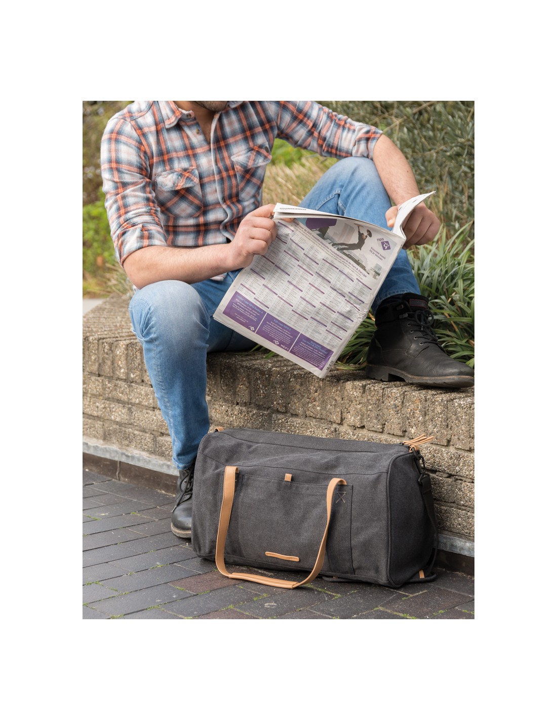 Metti l'essenziale per un viaggio di piacere o di lavoro in questaborsa in canvas naturale e resistente. Include tracolla regolabile e removibile. Senza PVC.
