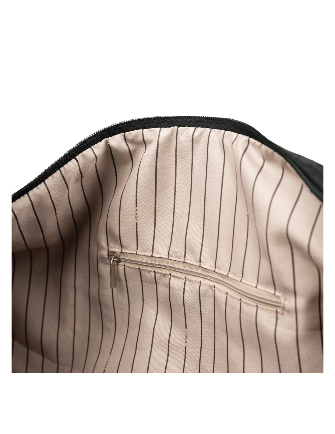 Viaggiate con stile con la borsa da weekend Marlow, realizzata in rPET certificato RCS. Rimanete organizzati in viaggio grazie a questa borsa per il weekend progettata per un fine settimana di 2-3 giorni o per un viaggio di lavoro. Dispone di una tasca interna e di una tasca esterna con cerniera. Dotata di una tracolla rimovibile e regolabile. La linea Marlow è realizzata in simil-camoscio riciclato con dettagli in PU e fodera in rPET. Include eleganti finiture color argento. Certificata da RCS (Recycled Claim Standard), la certificazione RSC garantisce che l'intera catena di approvvigionamento dei materiali riciclati sia certificata. Il contenuto totale di materiale riciclato si basa sul peso totale del prodotto. Questo prodotto contiene il 43% di poliestere riciclato certificato RCS e il 3% di poliuretano riciclato certificato RCS.