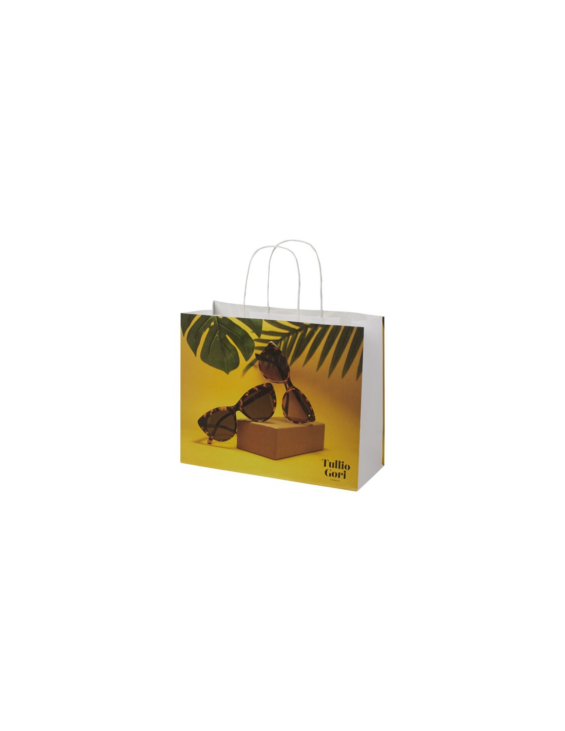 Sacchetto per bottiglia di vino di carta integra da 170 g/m² opaca realizzato a mano (12 x 9 x 37 cm) con manici di plastica. La parte anteriore e posteriore personalizzabili offrono un ampio spazio per stampare un logo o qualsiasi altro design, rendendolo un ottimo strumento di marketing...