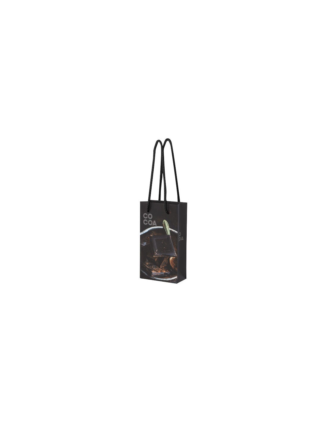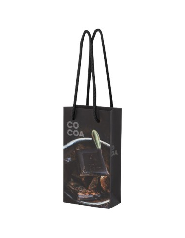 Sacchetto piccolo di carta integra da 170 g/m² opaca (9,5 x 4 x 17 cm) realizzato a mano con manici di plastica. La parte anteriore e posteriore personalizzabili offrono un ampio spazio per stampare un logo o qualsiasi altro design, rendendolo un ottimo strumento di marketing aziendale. Realizzata in Europa e riciclabile al 100%.