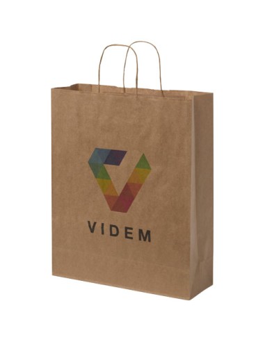 Sacchetto in carta kraft di grandi dimensioni (32 x 12 x 40 cm) con manici intrecciati. Realizzato in Europa con carta di provenienza responsabile (bianco da 90 g/m², marrone da 80 g/m²) è una soluzione per il confezionamento sostenibile e durevole con ampio spazio per una varietà di articoli. L'aspetto naturale e rustico della carta kraft aggiunge un tocco elegante adatto per qualsiasi occasione. Perfetto per lo shopping, i regali o gli eventi, questo sacchetto è un'alternativa ecologica alle borse di plastica. Scegli la praticità e la responsabilità ambientale con i nostri sacchetti di carta kraft. Dimensione: 32 x 12 x 40 cm.