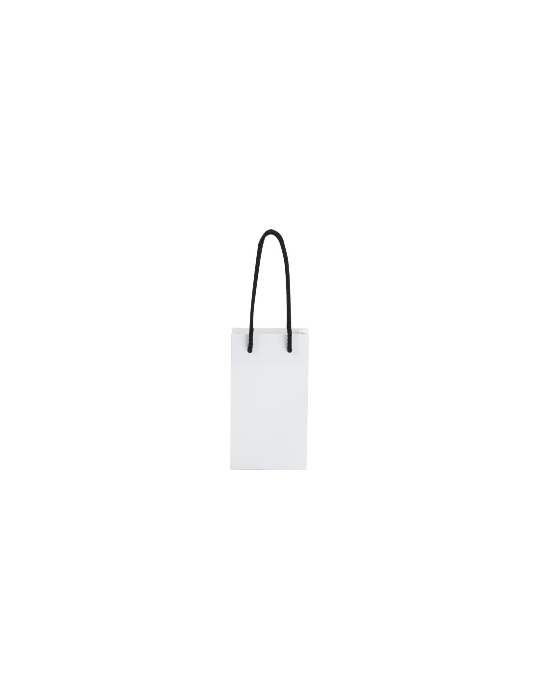 Sacchetto piccolo di carta integra da 170 g/m² opaca (9,5 x 4 x 17 cm) realizzato a mano con manici di plastica. La parte anteriore e posteriore personalizzabili offrono un ampio spazio per stampare un logo o qualsiasi altro design, rendendolo un ottimo strumento di marketing aziendale. Realizzata in Europa e riciclabile al 100%.