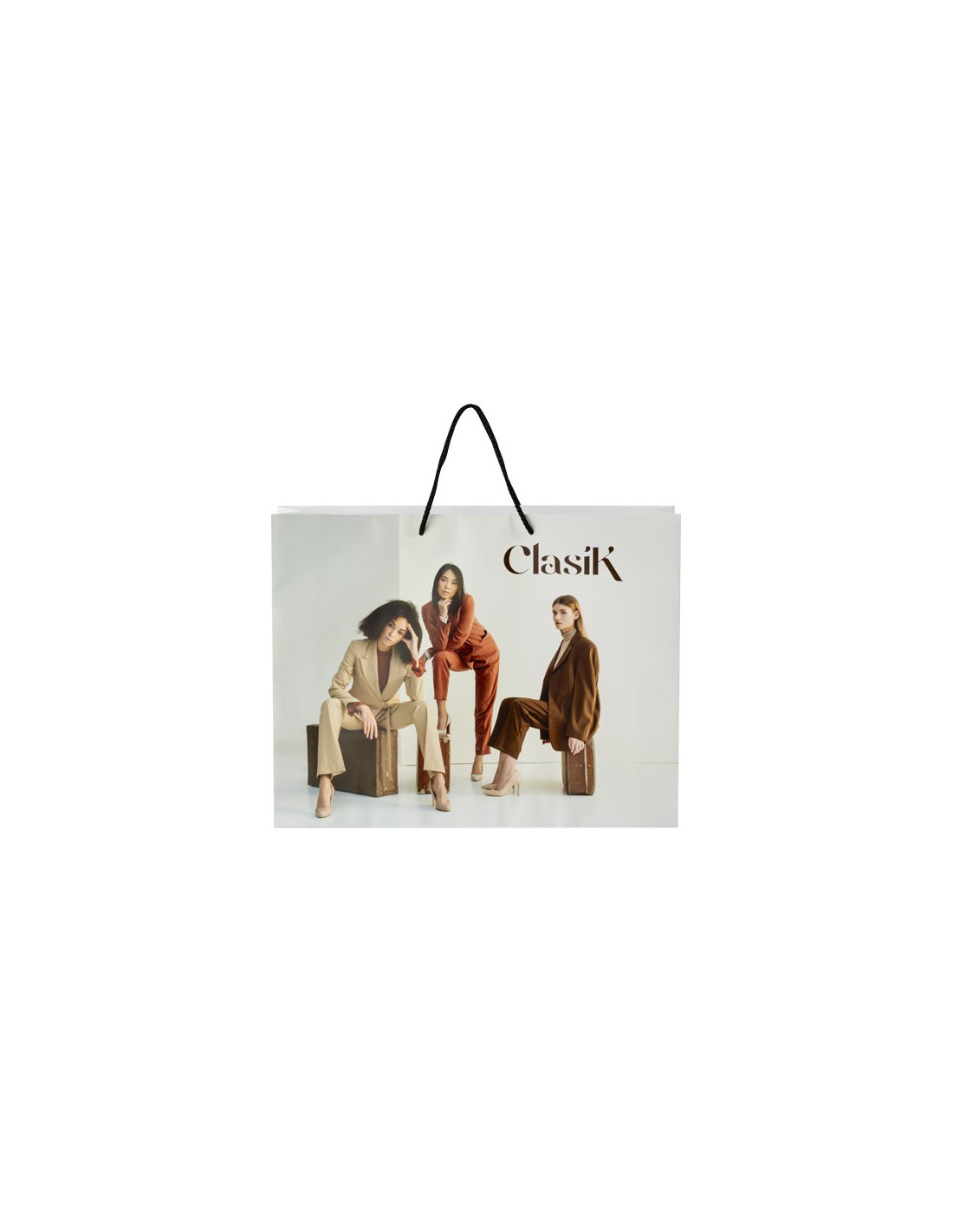 Shopper in carta piccolo da 150 g/m² (24 x 9 x 24 cm) realizzato con scarti agricoli e caratterizzato da manici di carta intrecciati. La parte anteriore e posteriore personalizzabili offrono un ampio spazio per stampare un logo o qualsiasi altro design, rendendolo un ottimo strumento di marketing...