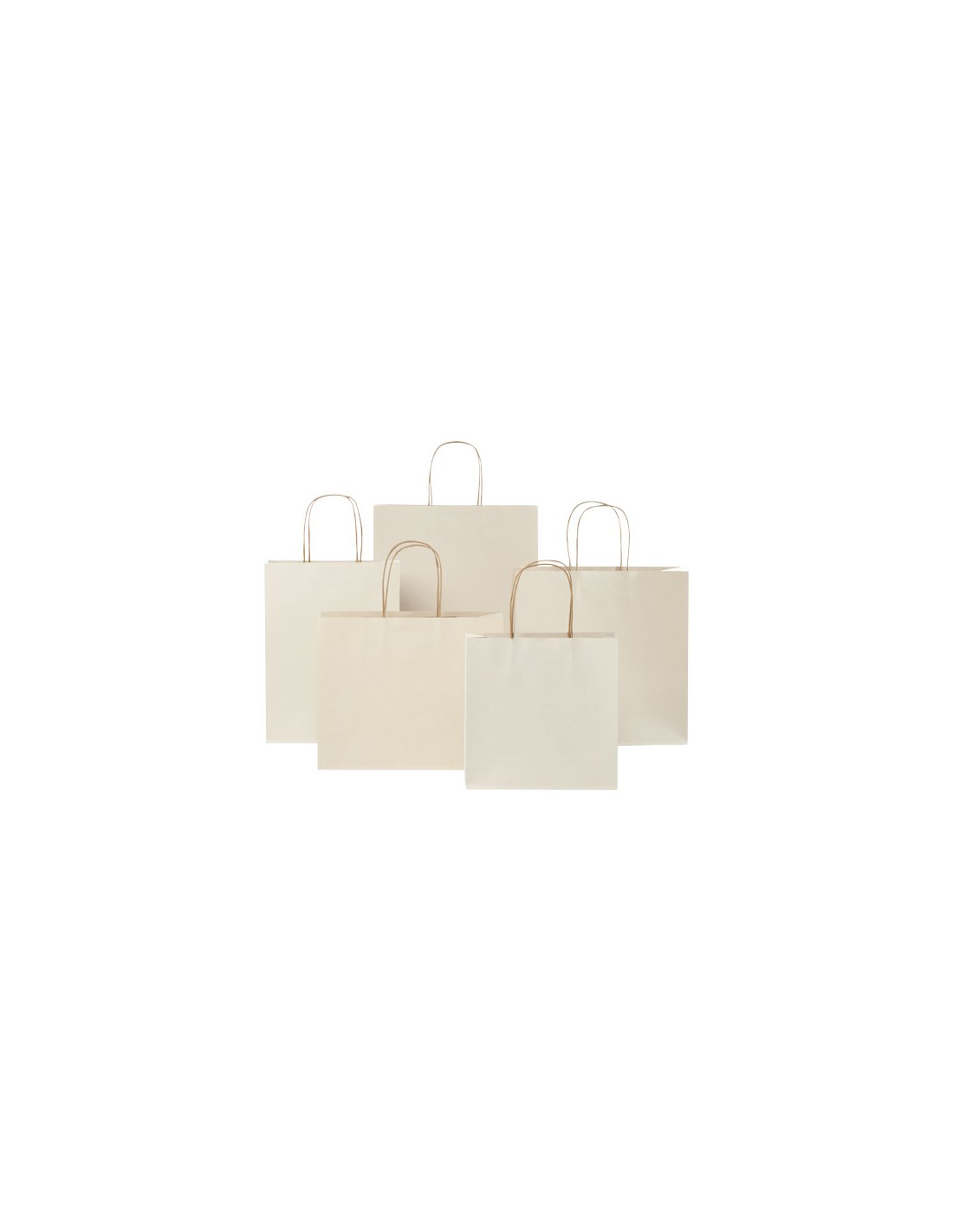 Sacchetto in carta kraft di grandi dimensioni (32 × 12 × 40 cm) con manici piatti. Realizzato in carta proveniente da fonti responsabili (bianco 90 g/m², marrone 80 g/m²), questo sacchetto è una soluzione di imballaggio resistente con spazio sufficiente per trasportare una vasta gamma di oggetti....