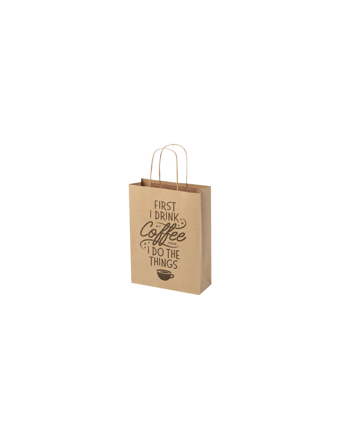 Shopper medio in carta kraft da 120 g/m² (24 x 9 x 32 cm) con manici di carta intrecciati. La parte anteriore e posteriore personalizzabili offrono un ampio spazio per stampare un logo o qualsiasi altro design, rendendolo un ottimo strumento di marketing aziendale. Realizzato in Europa e riciclabile al 100%, questo sacchetto è una scelta più sostenibile per aziende e persone attente all'ambiente in cerca di una soluzione per il confezionamento sostenibile.