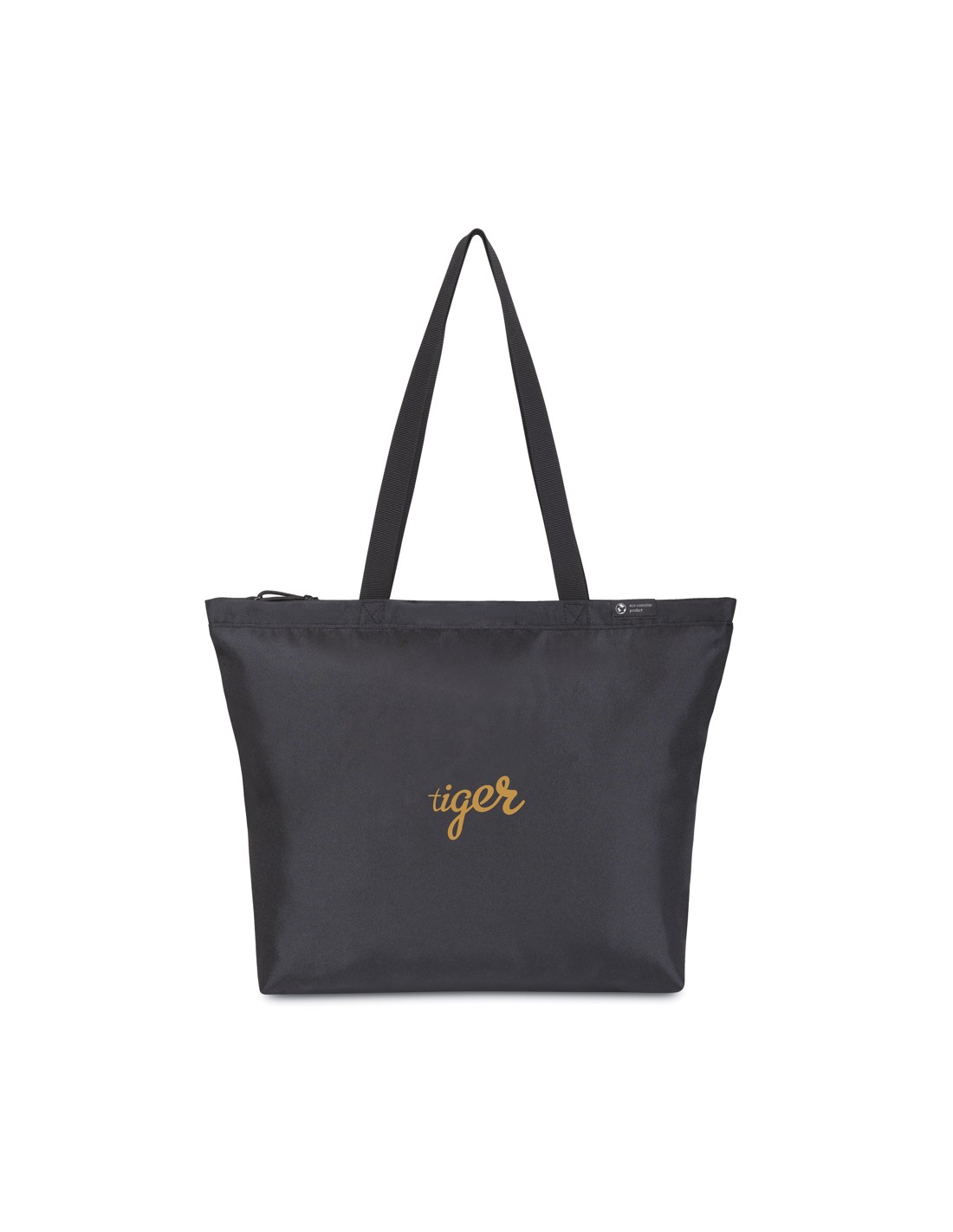 Una versione moderna e sostenibile di una borsa shopper classica, realizzata con tessuto e cinghie ricavati da bottiglie di plastica riciclate. Ampio scomparto principale con chiusura a zip. Tasca interna per riporre la borraccia. Disponibile su entrambe le sponde dell'Atlantico. Questo articolo è disponibile anche presso Gemline per i clienti negli Stati Uniti e in Canada.