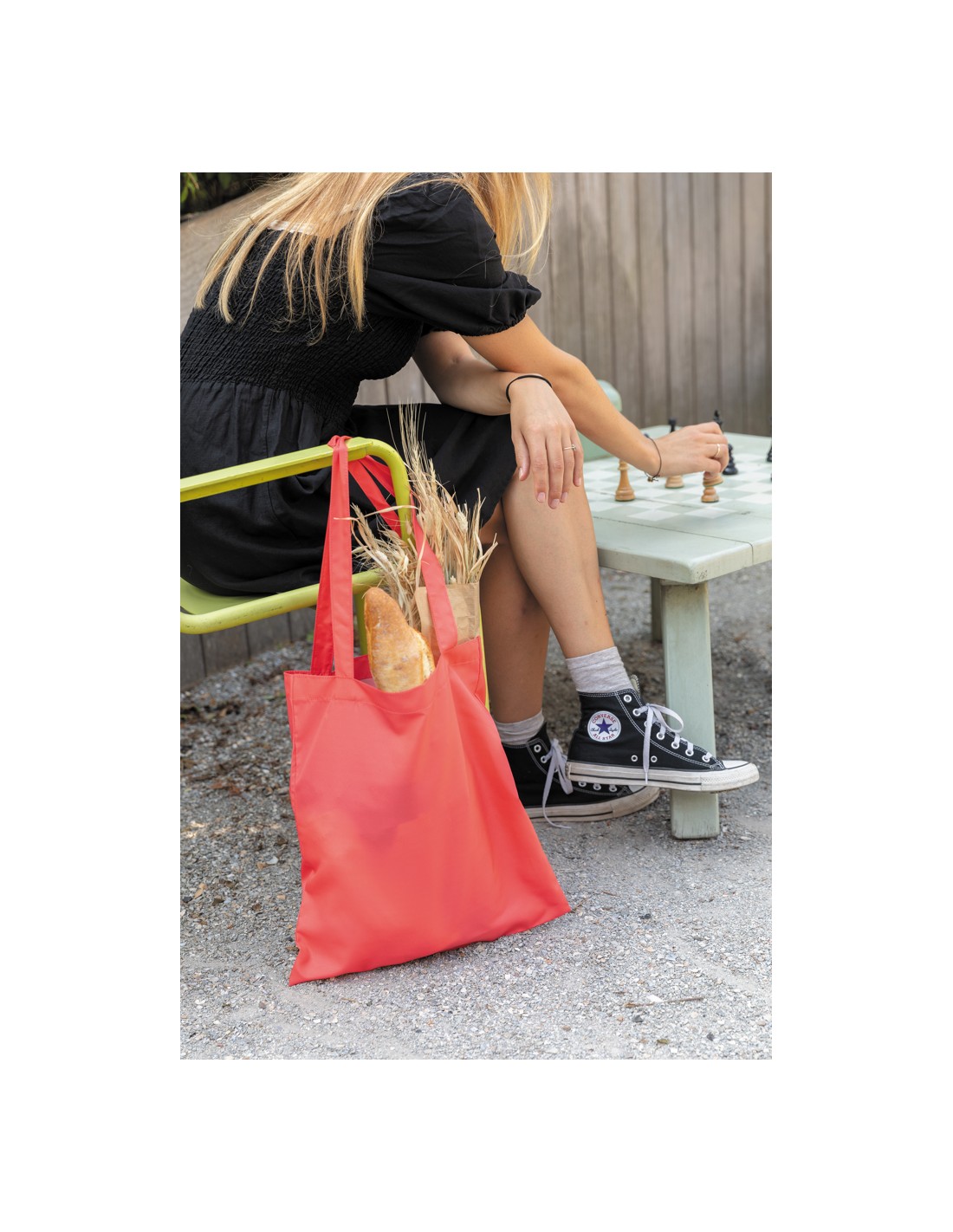 Basta greenwashing, raccontiamo la vera storia sulla sostenibilità. Questa shopper in rPET 190T è realizzata con traccianti AWARE™. Con AWARE™ le rivendicazioni sull'utilizzo di veri materiali riciclati e sul risparmio d'acqua sono garantite grazie all'utilizzo di componenti fisiche tracciabili e ad una tecnologia immutabile (blockchain). Risparmia l'acqua utilizza veri materiali riciclati. Il 2% dei proventi di ogni prodotto Impact venduto sarà donato a Water.org. E' superleggera e quindi facile da portare dove vuoi. Per produrla sono state riusate 3 bottiglie in PET da 500 ml. I dati sul risparmio si basano su dati LCA pubblicati da Textile Exchange.