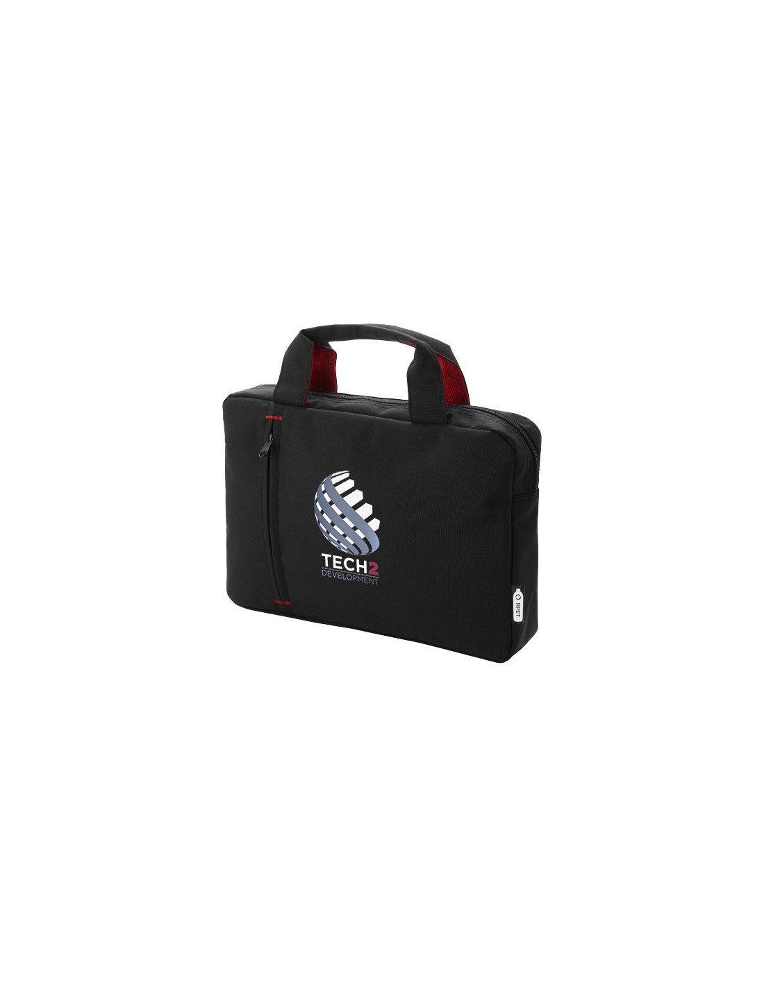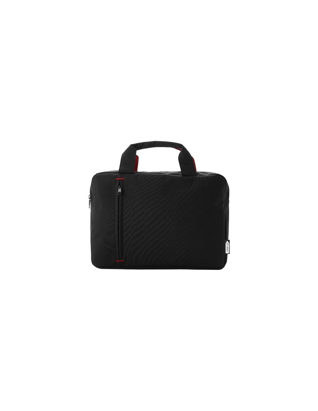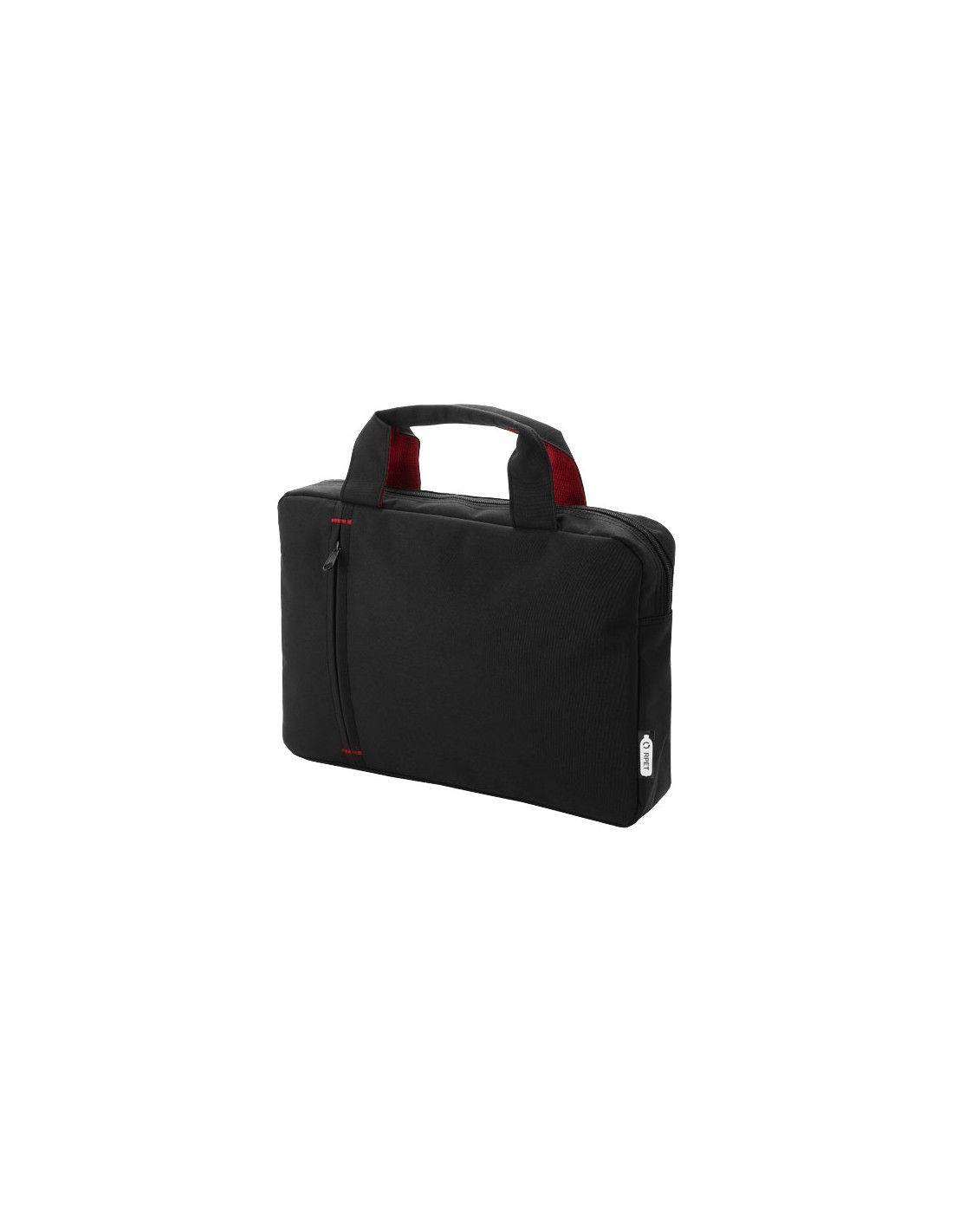 Cartella portadocumenti realizzata in plastica PET riciclata caratterizzata da uno scomparto principale e una tasca frontale entrambi con zip. Dispone inoltre di maniglie rinforzate sulla parte superiore ed elementi in colore a contrasto alla moda.
