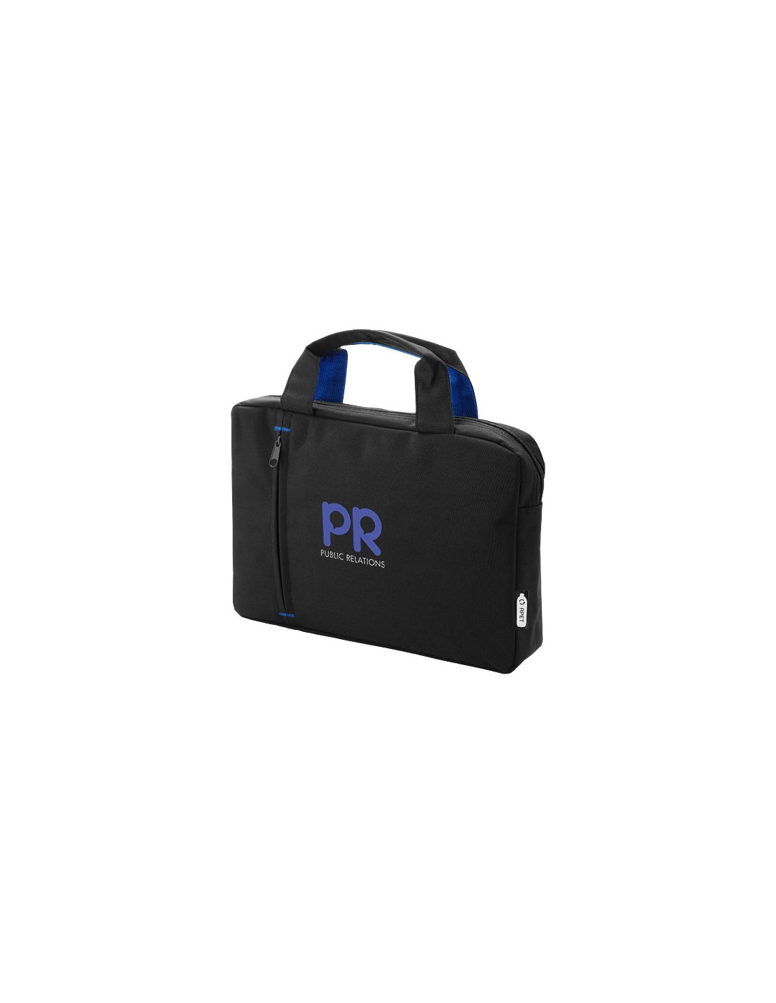 Cartella portadocumenti realizzata in plastica PET riciclata caratterizzata da uno scomparto principale e una tasca frontale entrambi con zip. Dispone inoltre di maniglie rinforzate sulla parte superiore ed elementi in colore a contrasto alla moda.