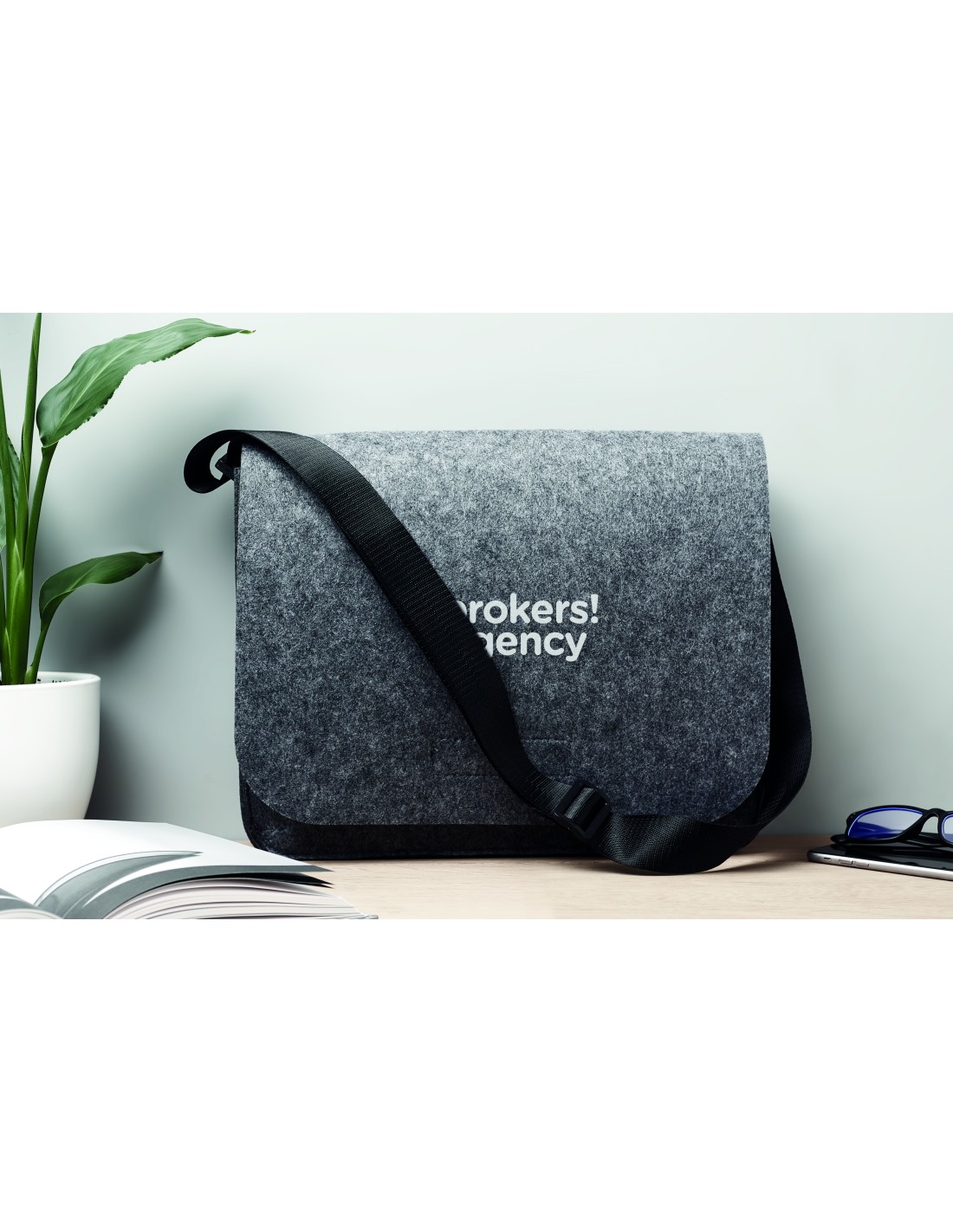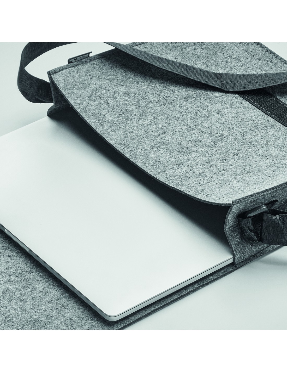 Borsa portadocumenti o porta laptop 15'' con tracolla e chiusura. In feltro. Tracolla in poliestere.