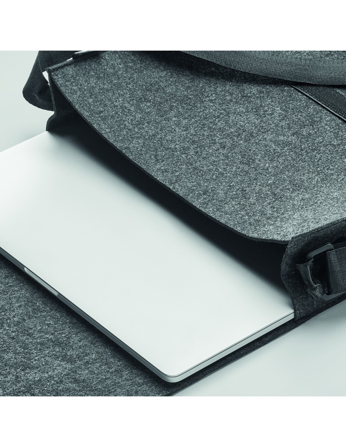 Borsa portadocumenti o porta laptop 15'' con tracolla e chiusura. In feltro. Tracolla in poliestere.