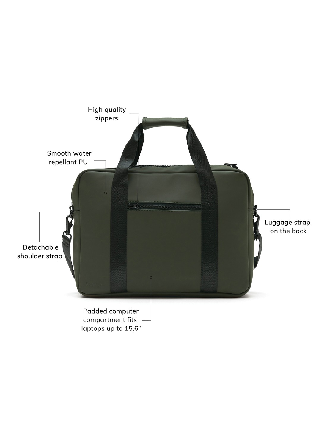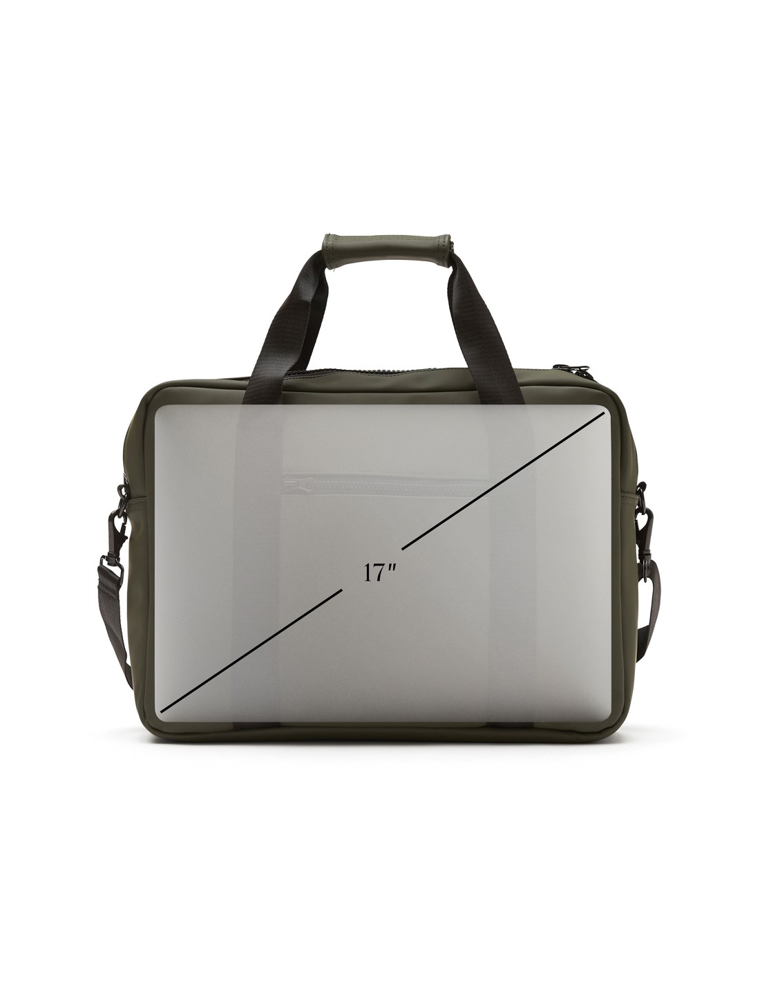 Borsa portacomputer dal design moderno e pulito. L'incontro tra funzionalità e design, oltre alla normale tasca per computer, questa borsa ha anche spazio per penne, documenti e altri effetti personali. La borsa è prodotta in materiale idrorepellente, con tracolla e manici per il trasporto. Include anche una fascia sul retro in modo da poterla attaccare al tuo trolley quando sei in viaggio. Adatto a computer fino a17 pollici. Attenzione: le dimensioni dello schermo non corrispondono alle dimensioni dell'intero computer.