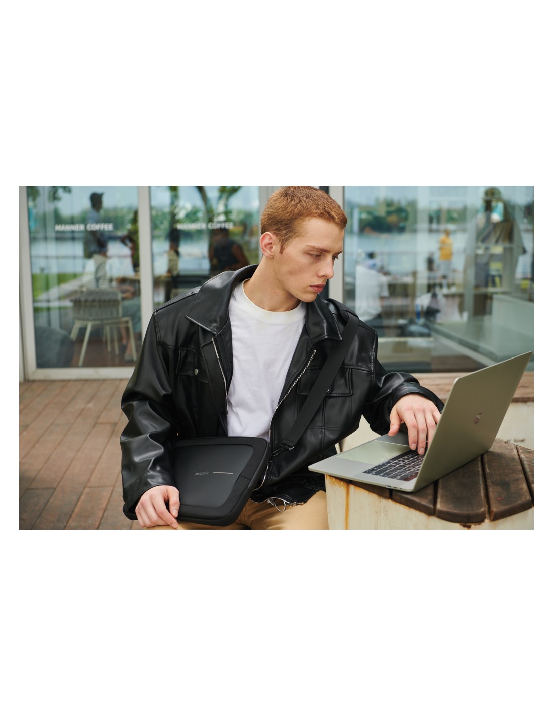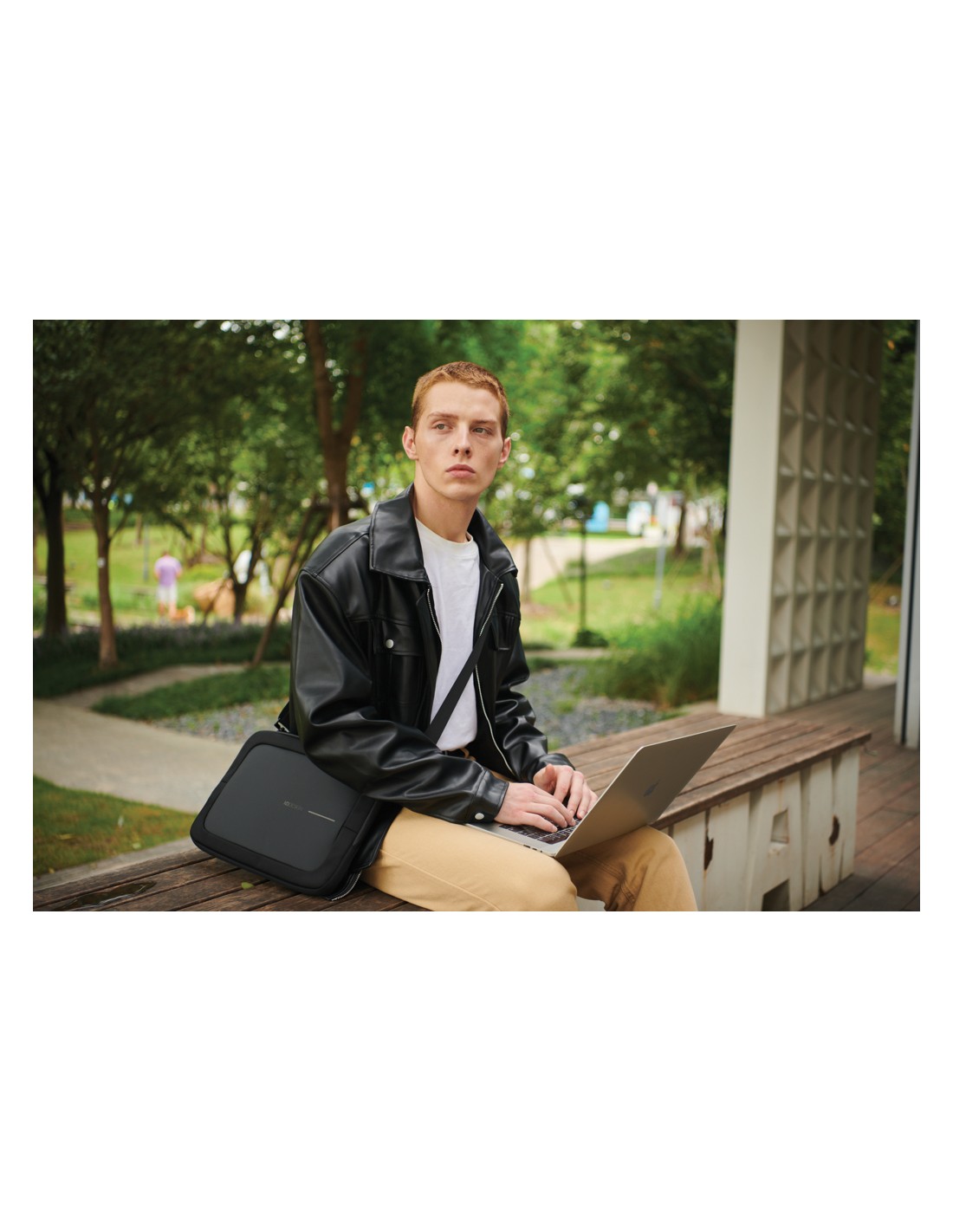 La borsa porta computer da 14" XD Design offre una protezione affidabile per il computer portatile. Realizzata in rPET 1200D e PU testurizzato, presenta una protezione idrorepellente. Il manico superiore e la tracolla offrono opzioni di trasporto versatili, mentre la tasca posteriore consente di riporre comodamente gli oggetti essenziali. La cerniera impermeabile e la fodera in pile testurizzato aggiungono un ulteriore livello di resistenza. Realizzata in rPET con il sistema di tracciamento AWARE™. Con AWARE™, è garantito l'uso di autentico tessuto riciclato. 17% di contenuto riciclato.
