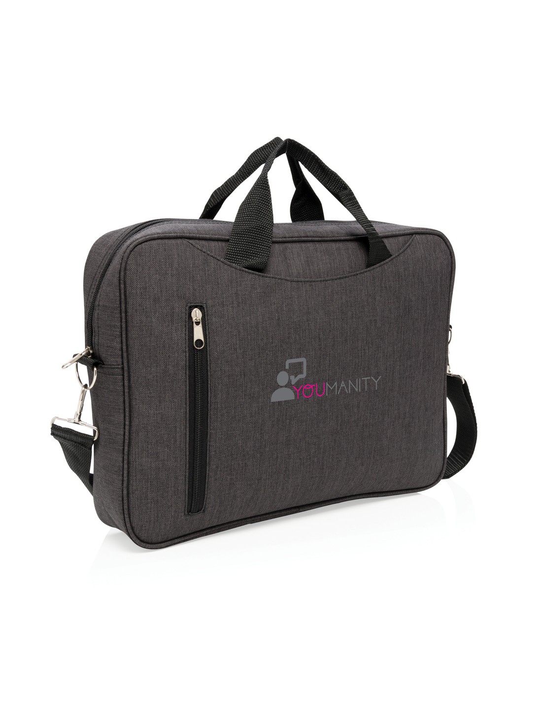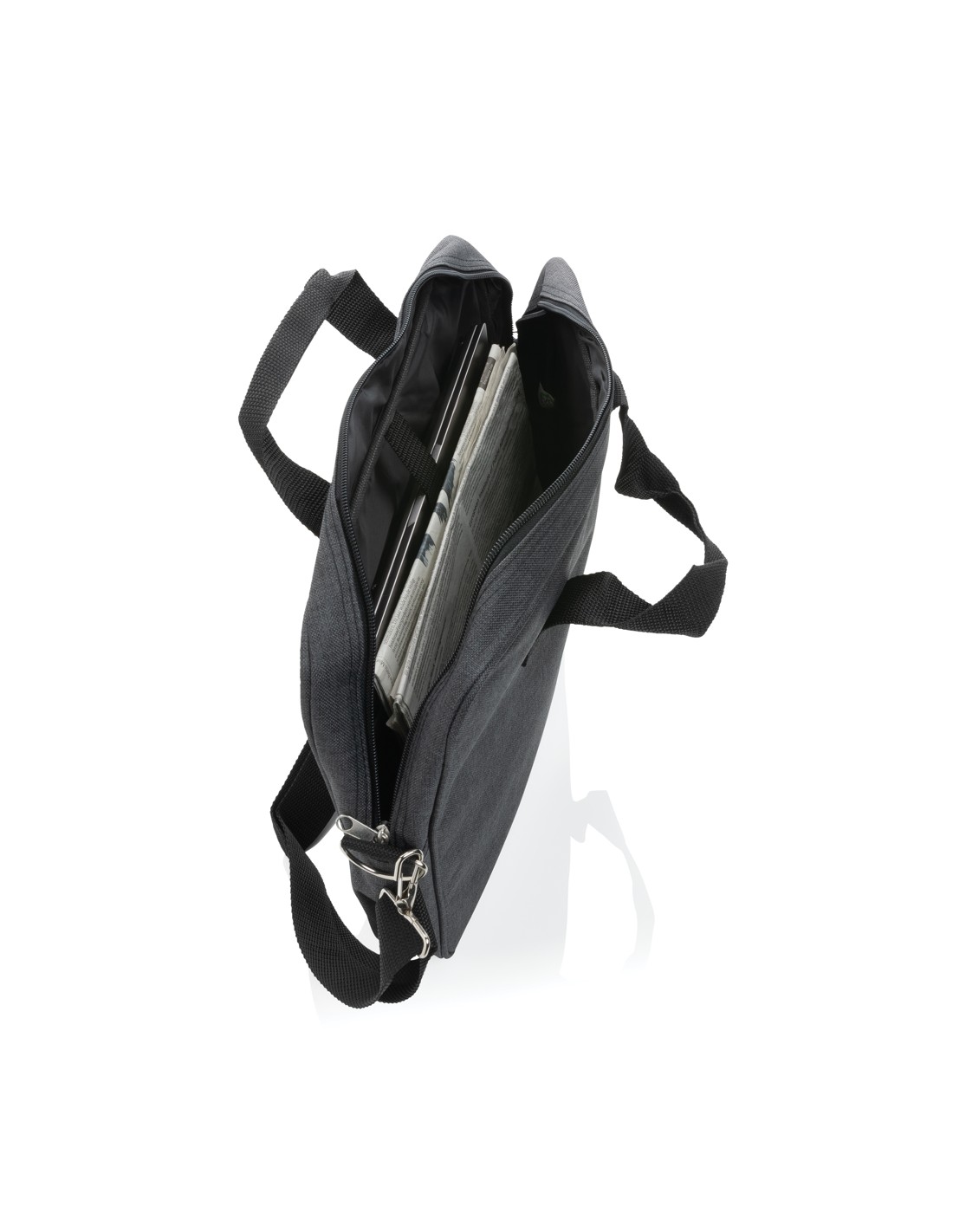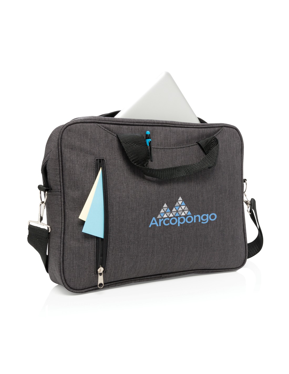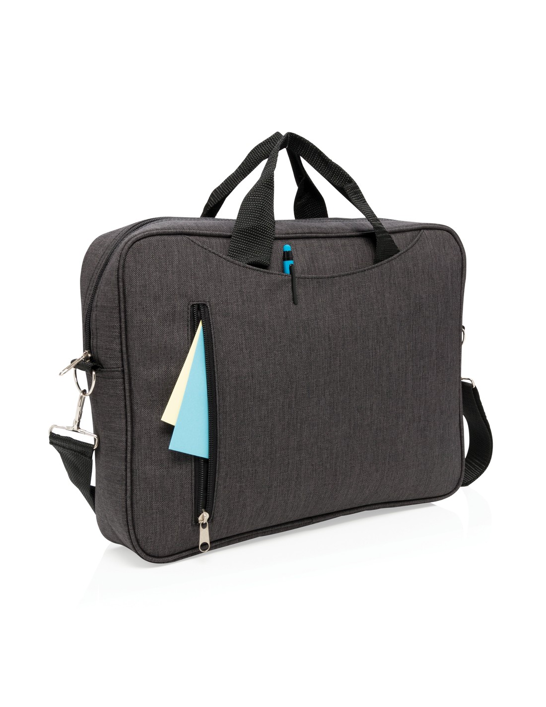 Borsa porta computer in poliestere 300D ideale per chi ama viaggiare leggero. Ha tutte le tasche che ti possono servire, uno scompartimento per computer da 15,4 pollici, scomparto porta documenti e invito per manico trolley. Senza PVC.