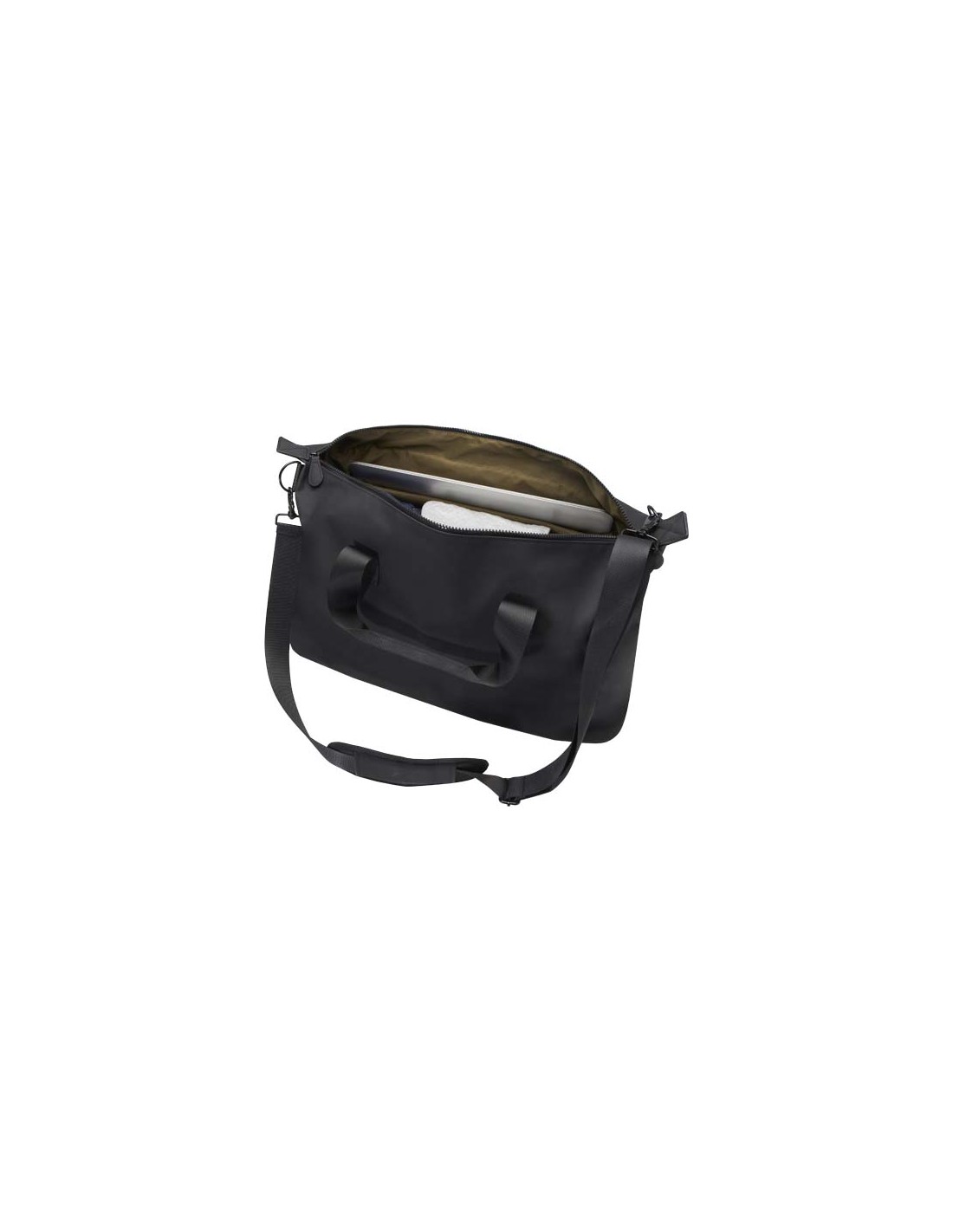 Il borsone Turner è realizzato in plastica riciclata certificata GRS al 51% e la fodera è in PET riciclato certificato GRS al 100%. Il borsone è caratterizzato da un apposito scomparto imbottito per portatile da 15,6", una fascia interna per riporre una borraccia e una tasca con cerniera per contenere gli oggetti più piccoli. Inoltre, un cinturino per bagagli posteriore consente di agganciarlo facilmente al bagaglio a mano, rendendolo un comodo accessorio per i viaggi. Il borsone può essere trasportato con le 2 maniglie corte o con la tracolla espandibile e rimovibile, regolabile per il massimo comfort. Capacità: 36 litri.