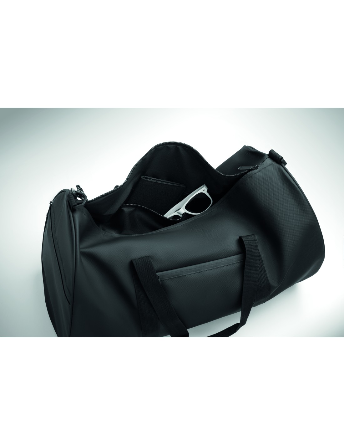 Borsone in poliestere 600D RPET con rivestimento in PU. Tasca frontale con cerniera. Fodera interna in poliestere 210D RPET. 1 scomparto laterale con cerniera / 1 scomparto laterale in rete. Tasca interna con cerniera.
