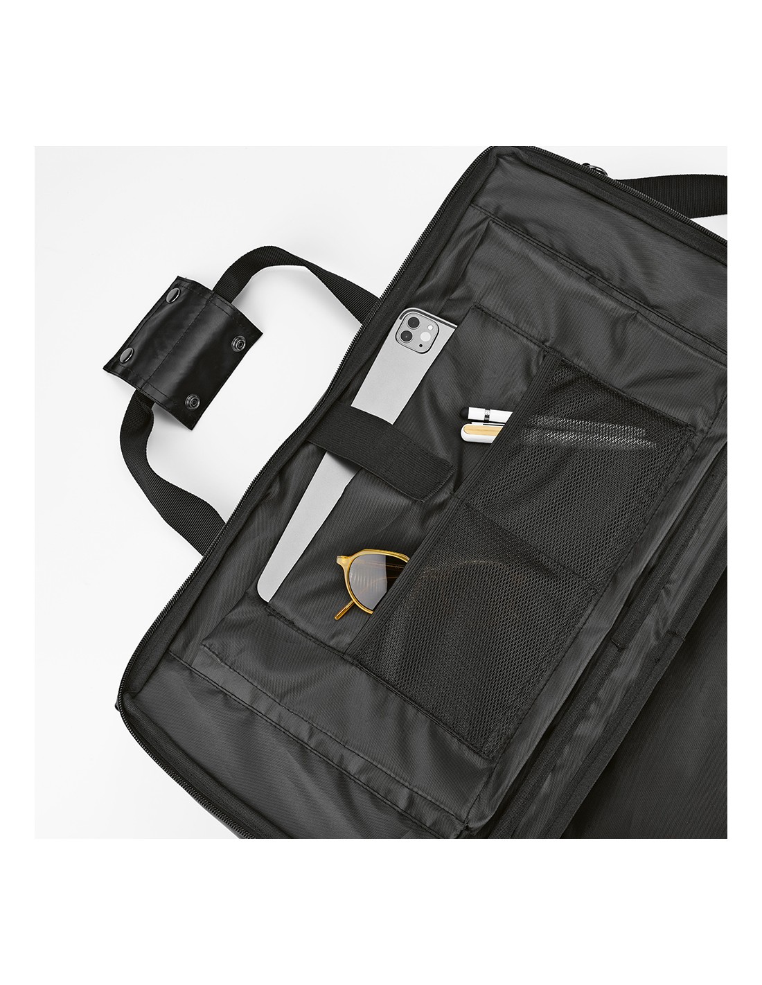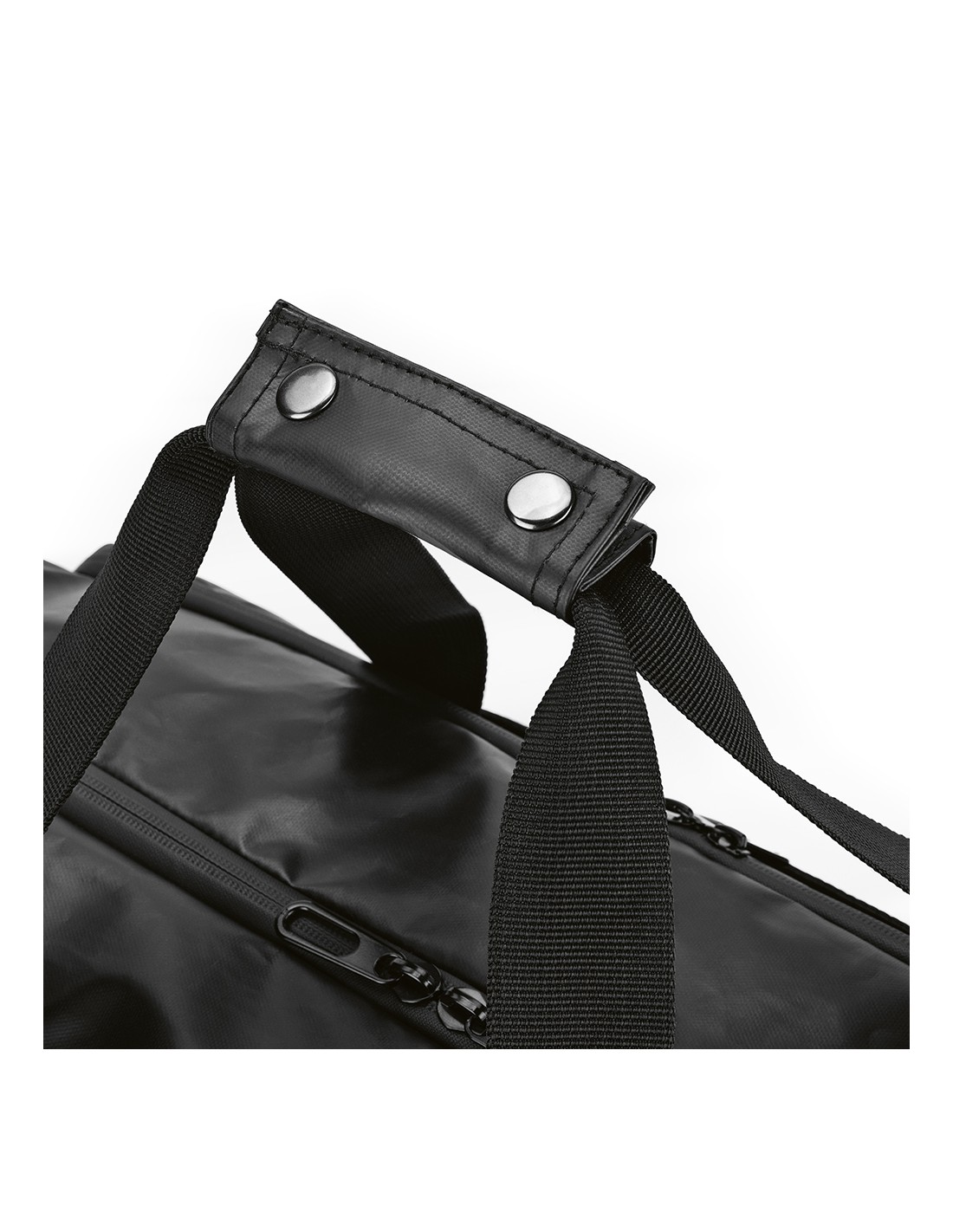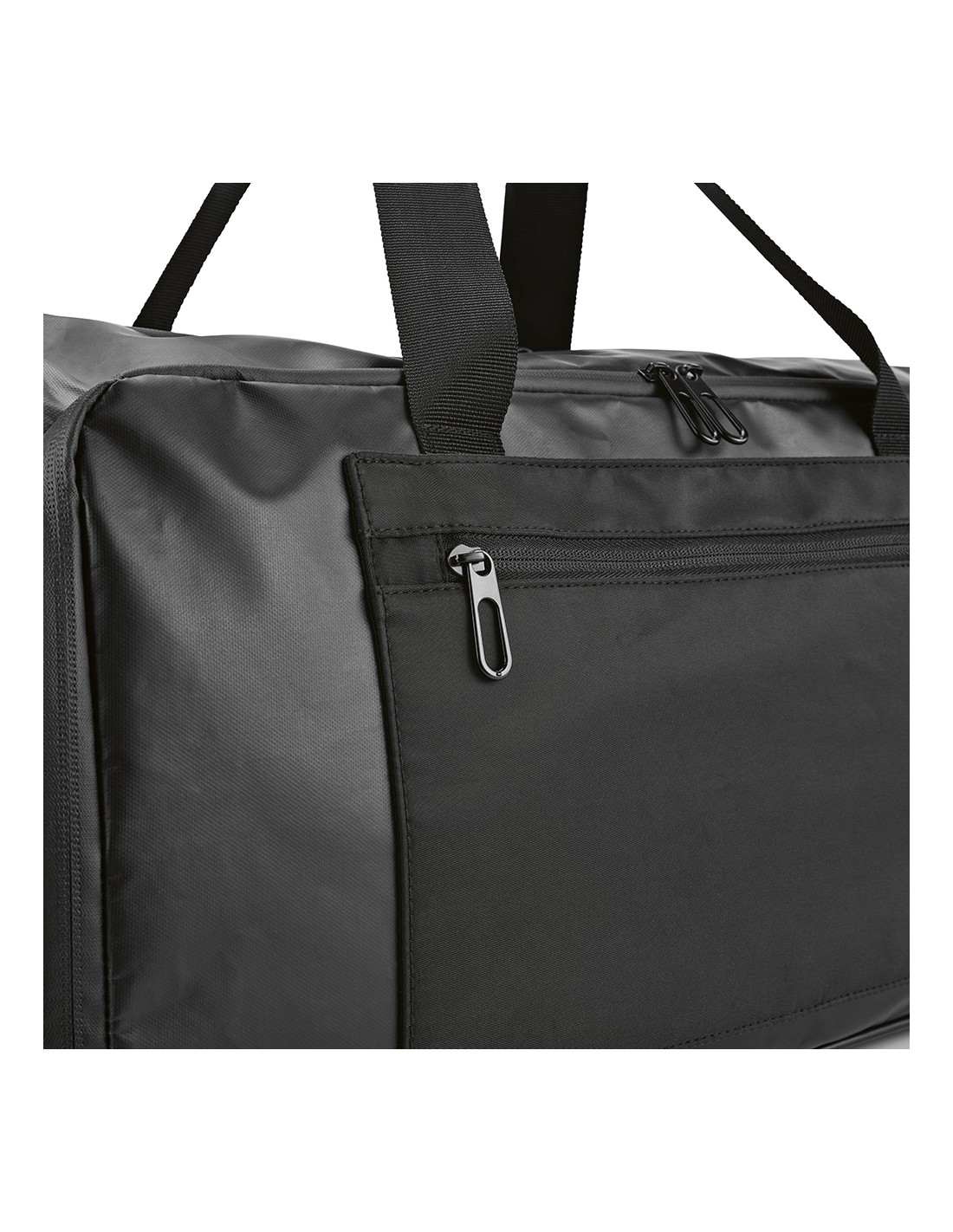 Borsone in poliestere 600D RPET con rivestimento in PU. Tasca frontale con cerniera. Fodera interna in poliestere 210D RPET. 1 scomparto laterale con cerniera / 1 scomparto laterale in rete. Tasca interna con cerniera.