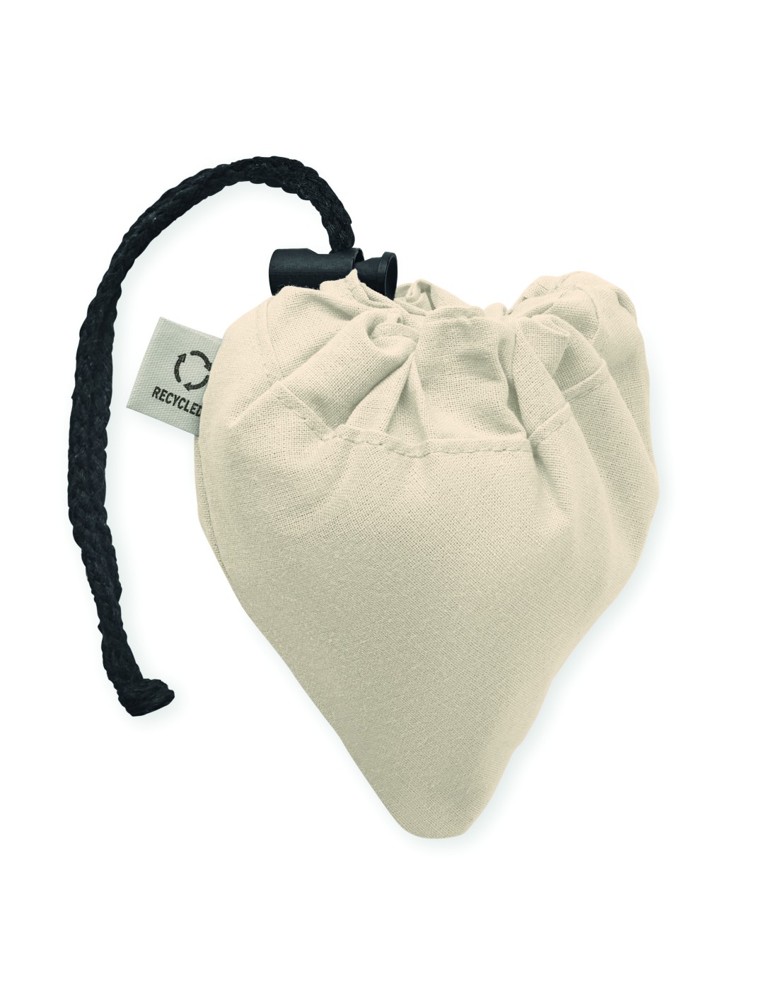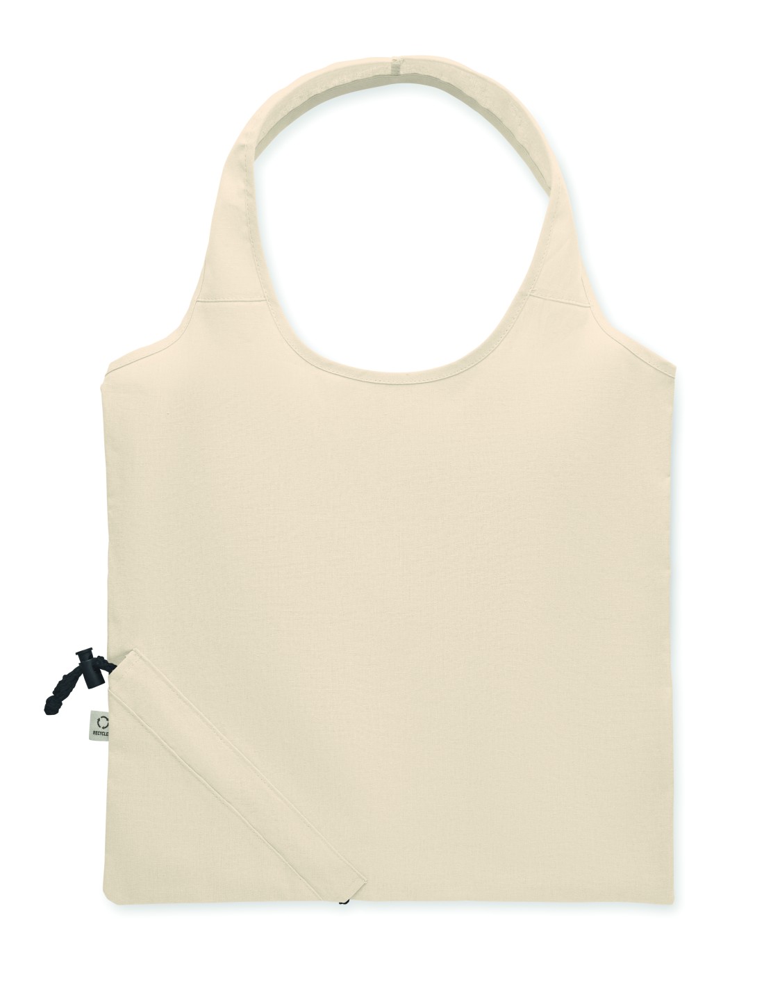 Shopping bag pieghevole in cotone riciclato pre-consumo (70% cotone riciclato e 30% RPET). 140 gr/m².