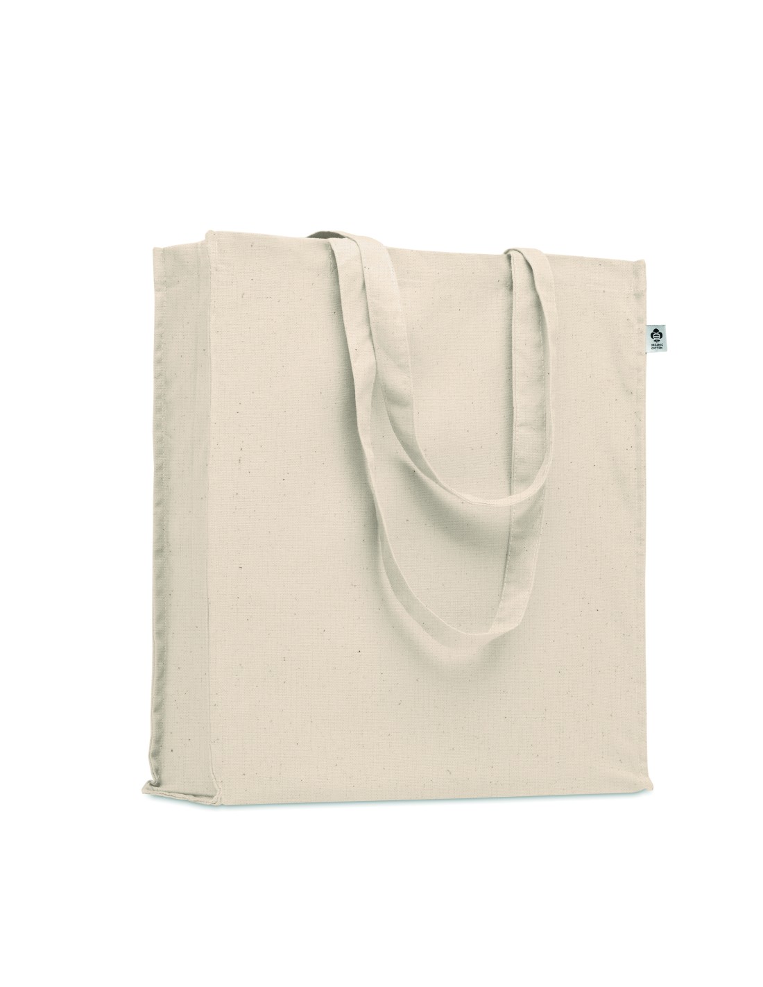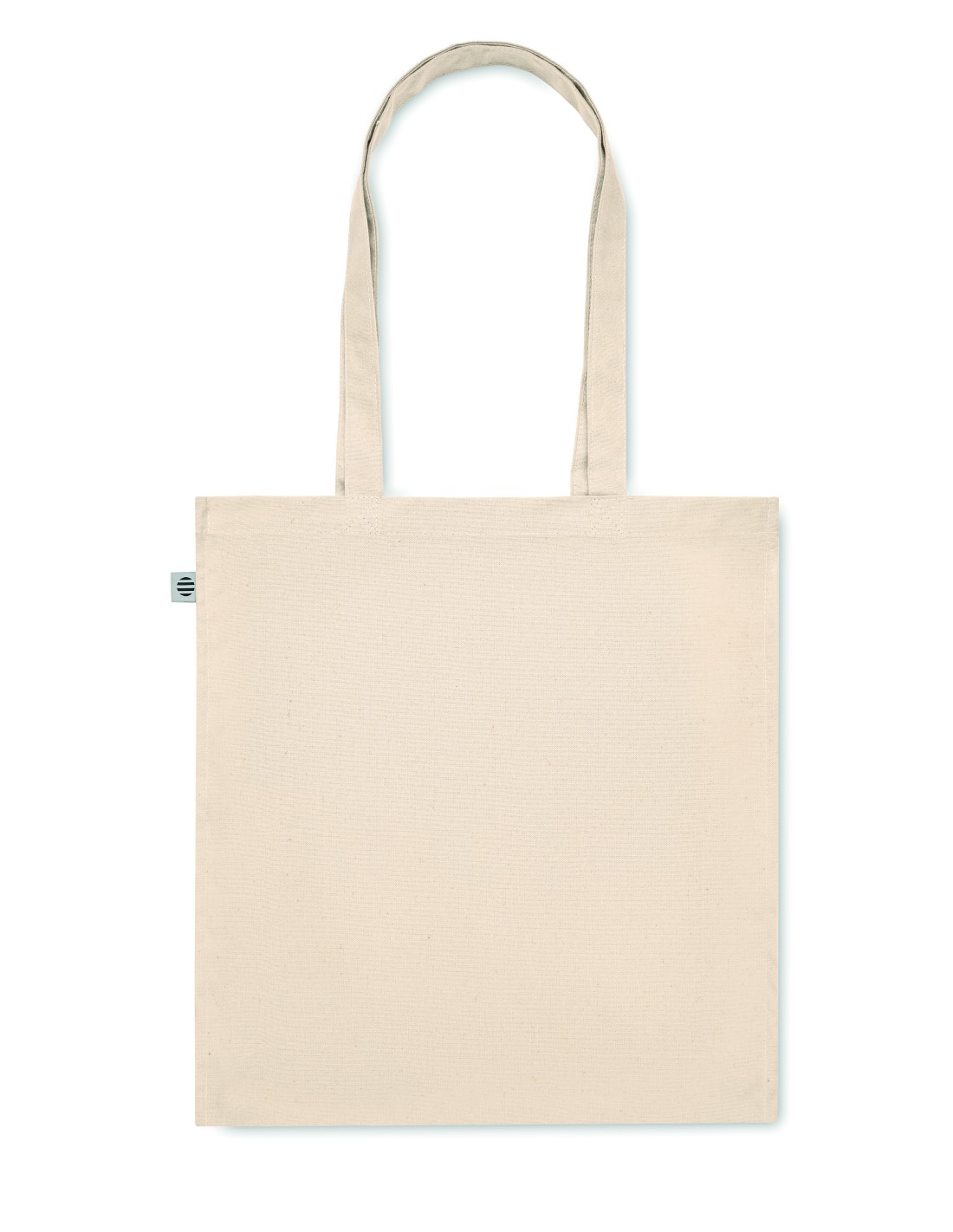 Shopper in cotone tinto Fairtrade con manici lunghi. 140gr/m². Questo prodotto è certificato OEKO-TEX® STANDARD 100.