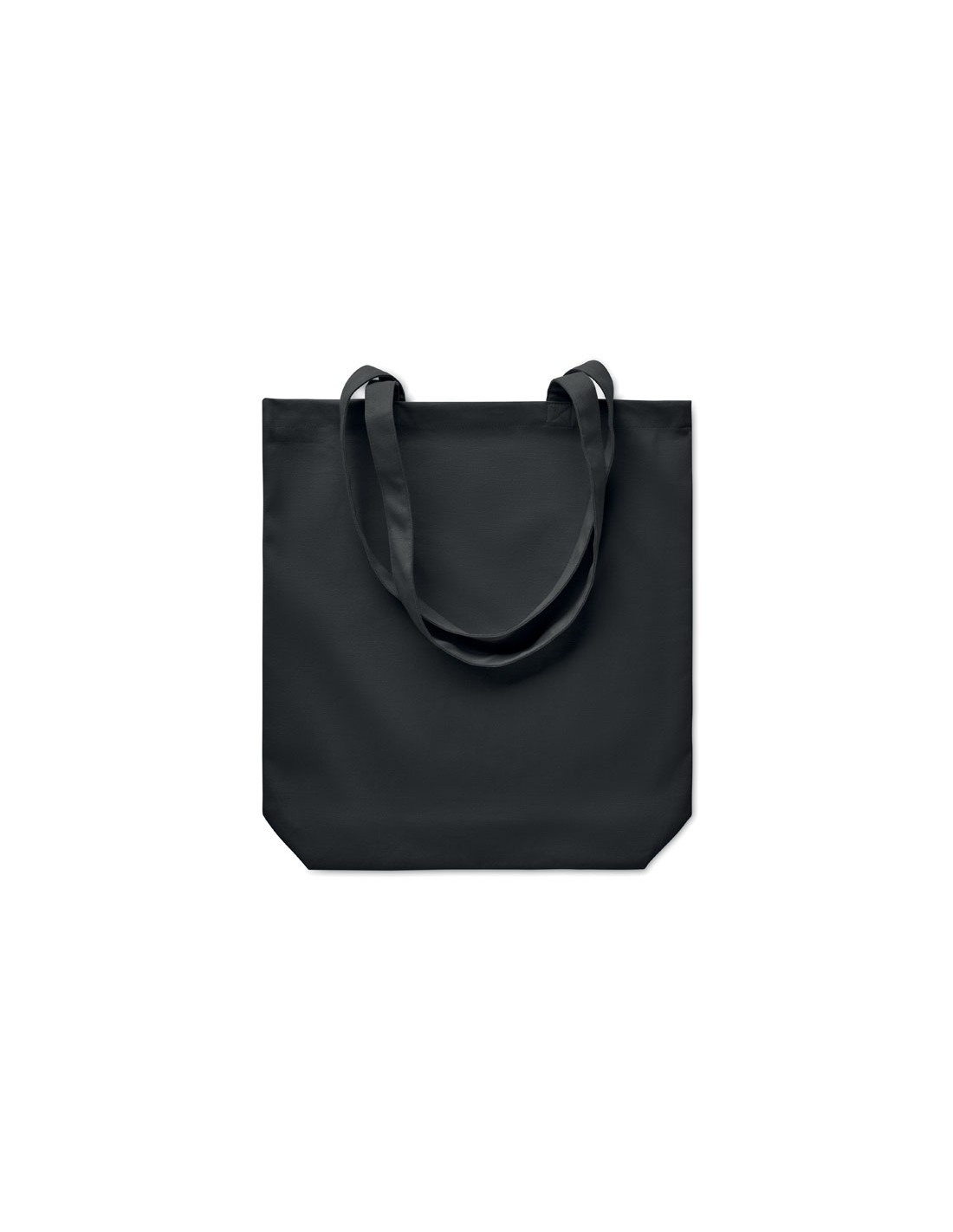 Shopper in cotone equosolidale con manici lunghi e soffietti. 180 gr/m². Questo prodotto è certificato OEKO-TEX® STANDARD 100.