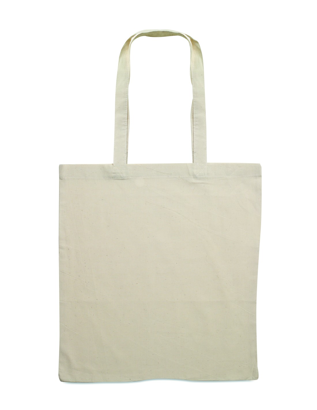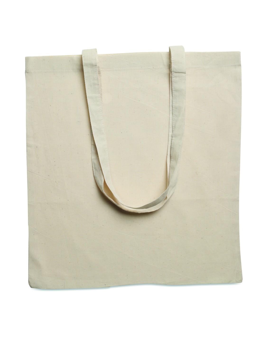 Shopper in cotone 140gr con manici lunghi. Questo prodotto è certificato OEKO-TEX® STANDARD 100.