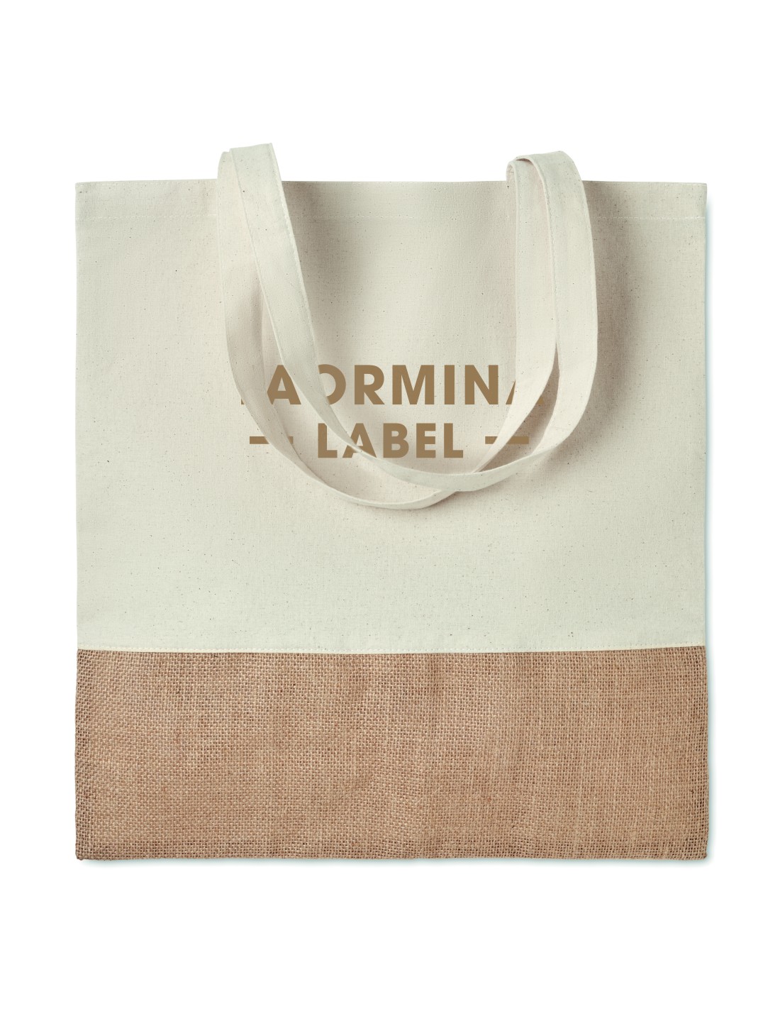 Shopper in cotone twill con dettagli in juta. Manici lunghi. 160 gr/m².