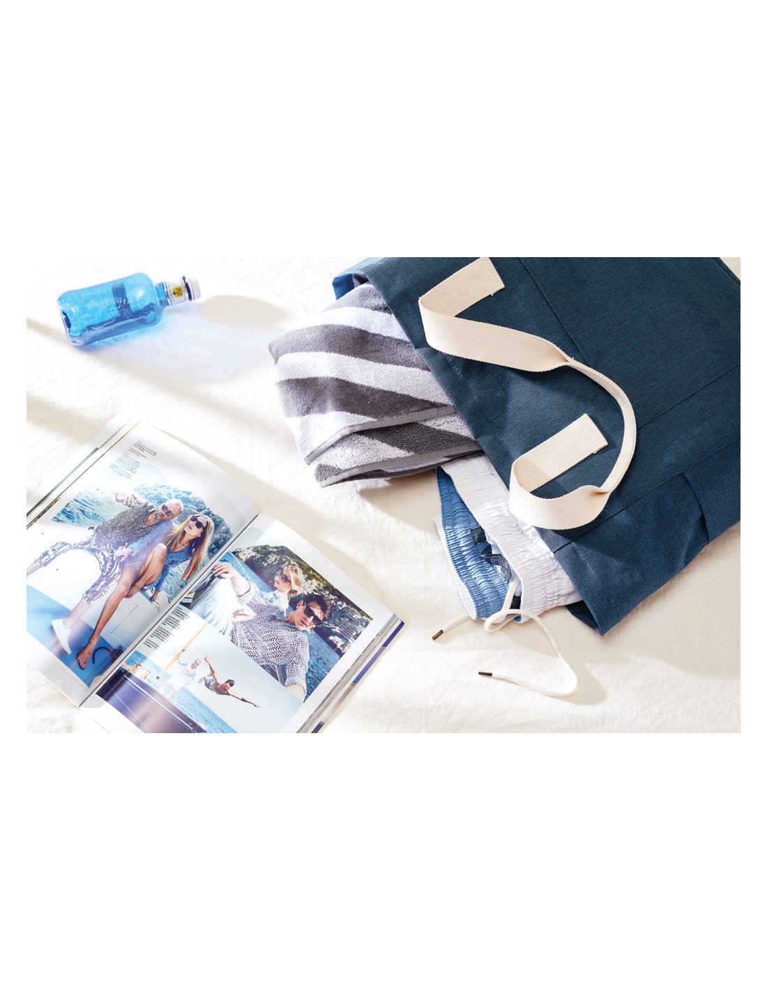 L'ampia tote bag Ash in PET riciclato è un'ottima alternativa alle borse di plastica. La borsa è resistente fino a 10 kg di peso e presenta un ampio scomparto principale aperto e può essere facilmente ripiegata utilizzando l'occhiello elastico sull'apertura. Grazie ai manici lunghi 30 cm, può...