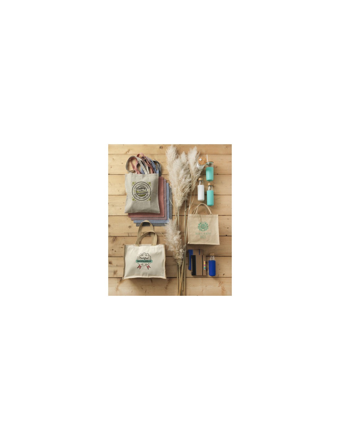 Shopper in cotone riciclato (65% cotone riciclato, 35% cotone normale) con manici lunghi. 140 gr/m².