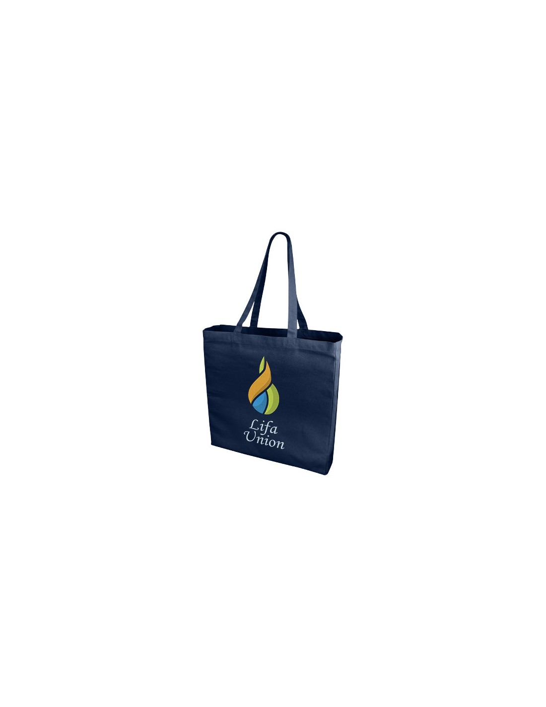 Shopper in cotone c/soffietto e manici lunghi. 140 gr/m².