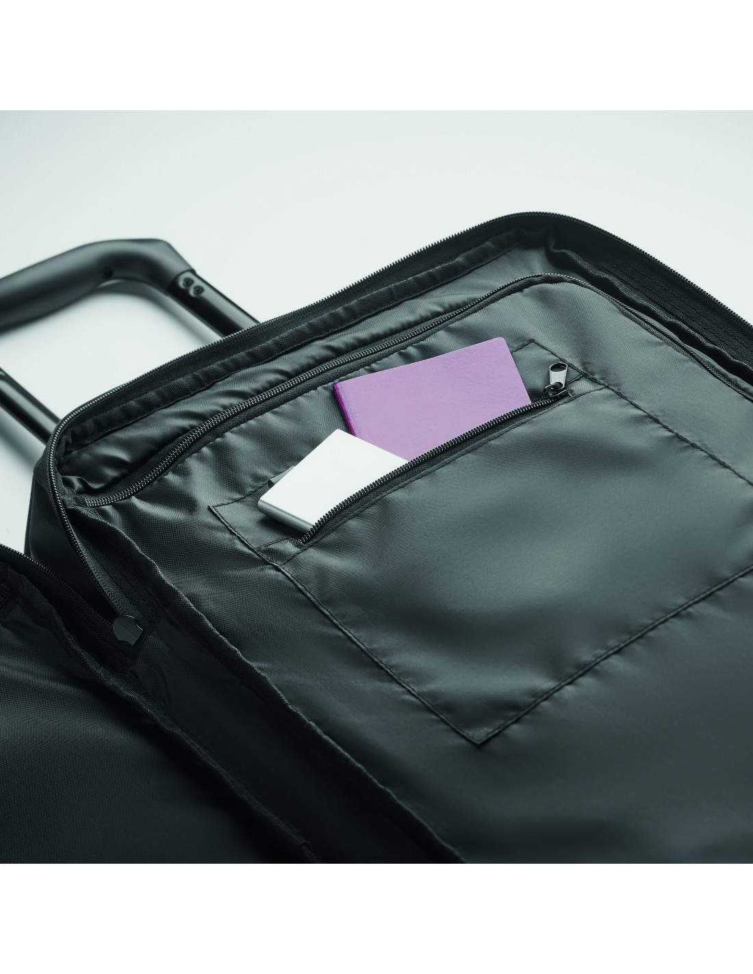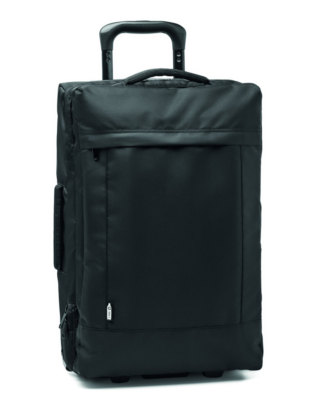 Borsa a tracolla realizzata in plastica PET riciclata con tracolla regolabile. Scomparto principale chiudibile con patella e fibbia.