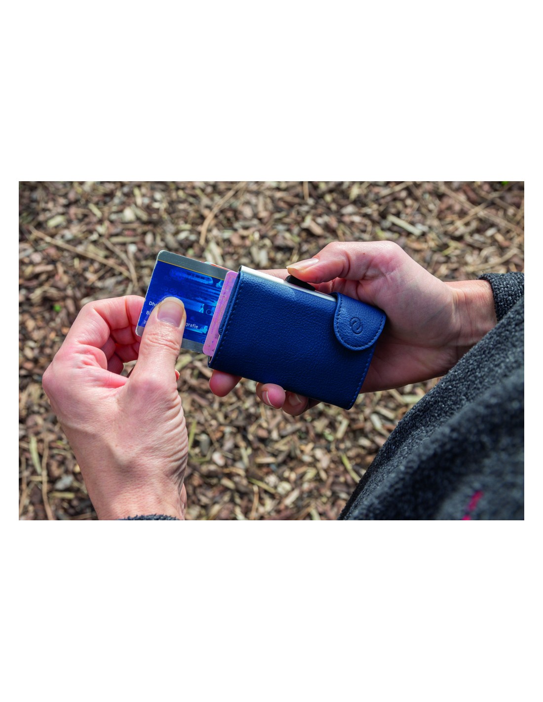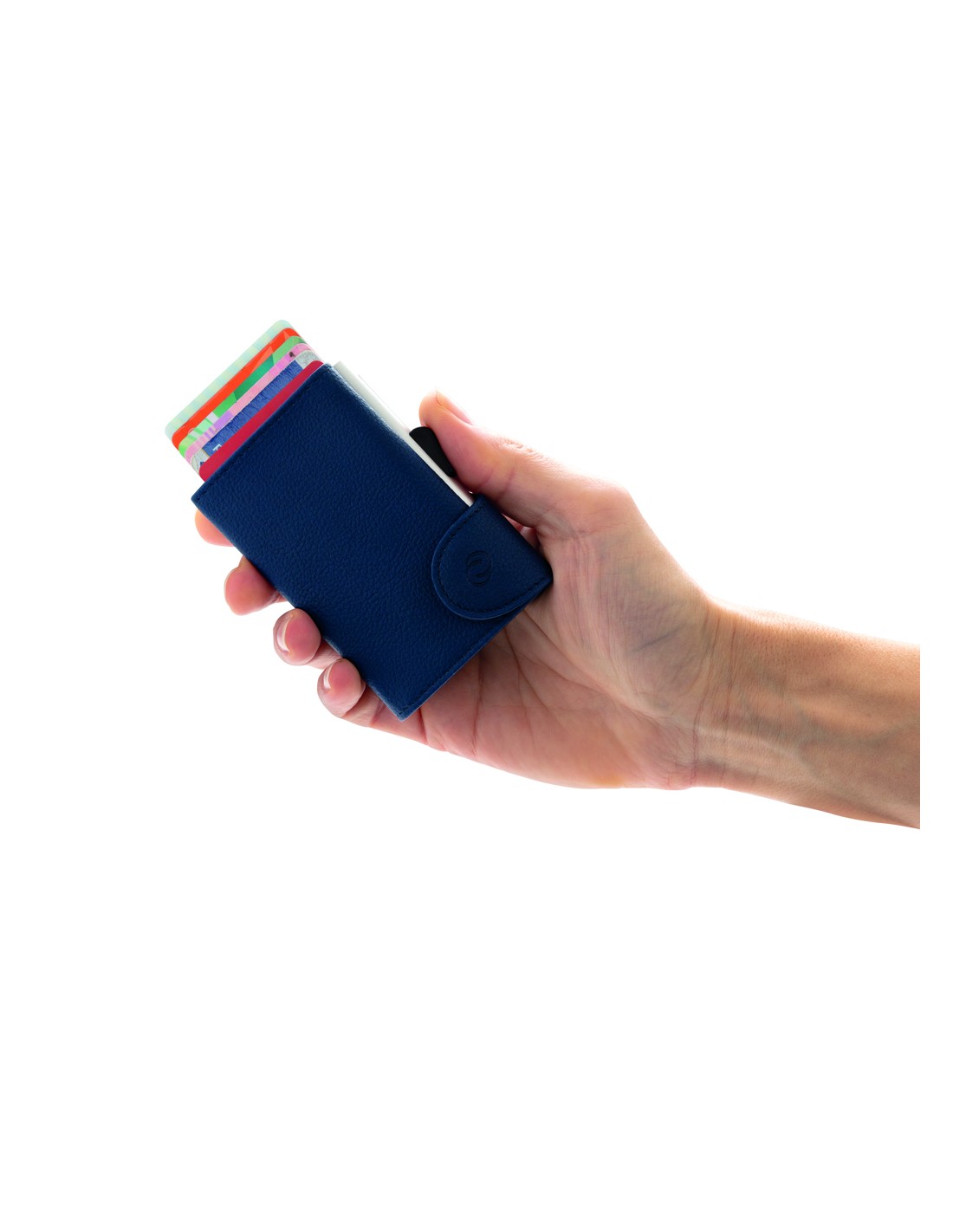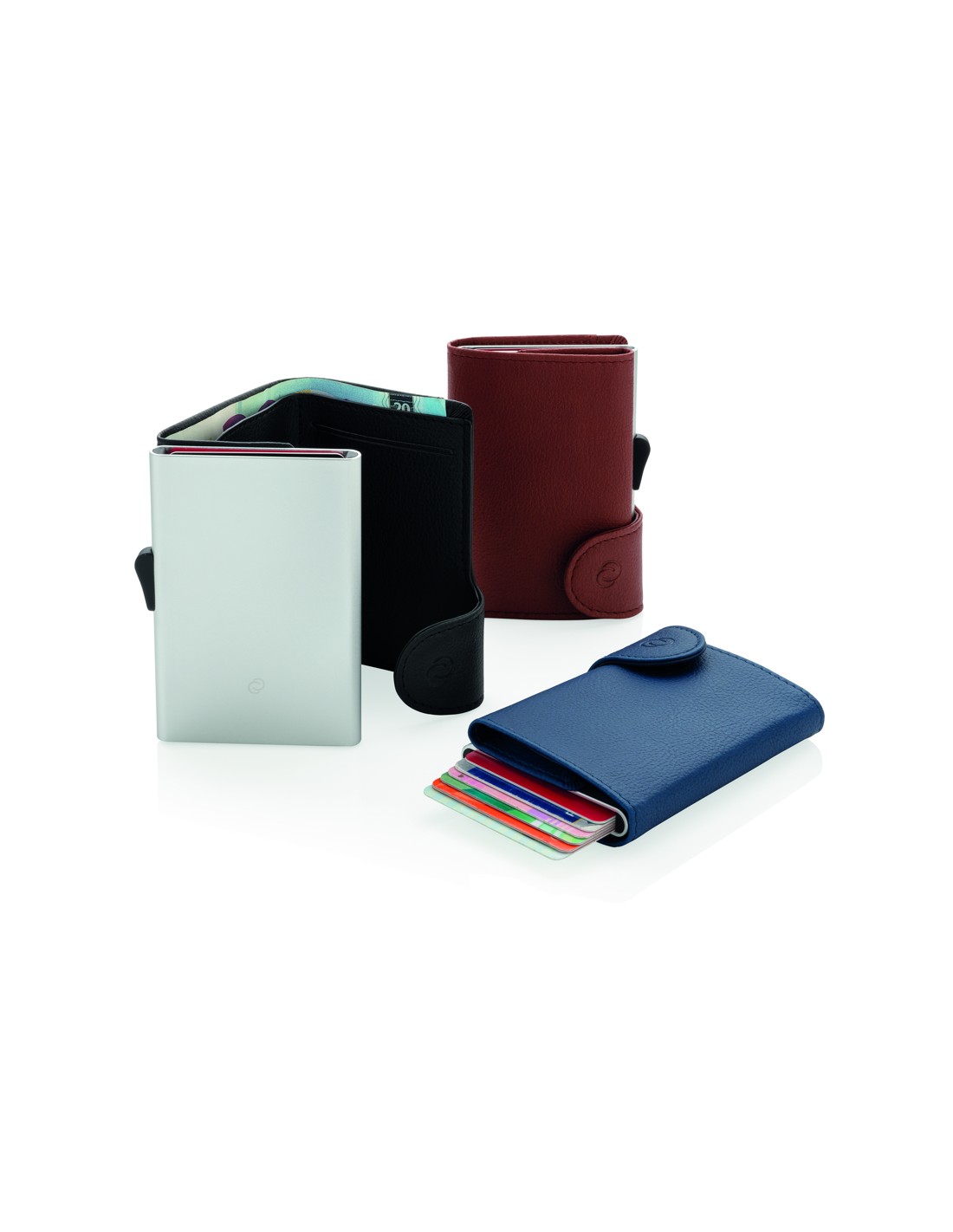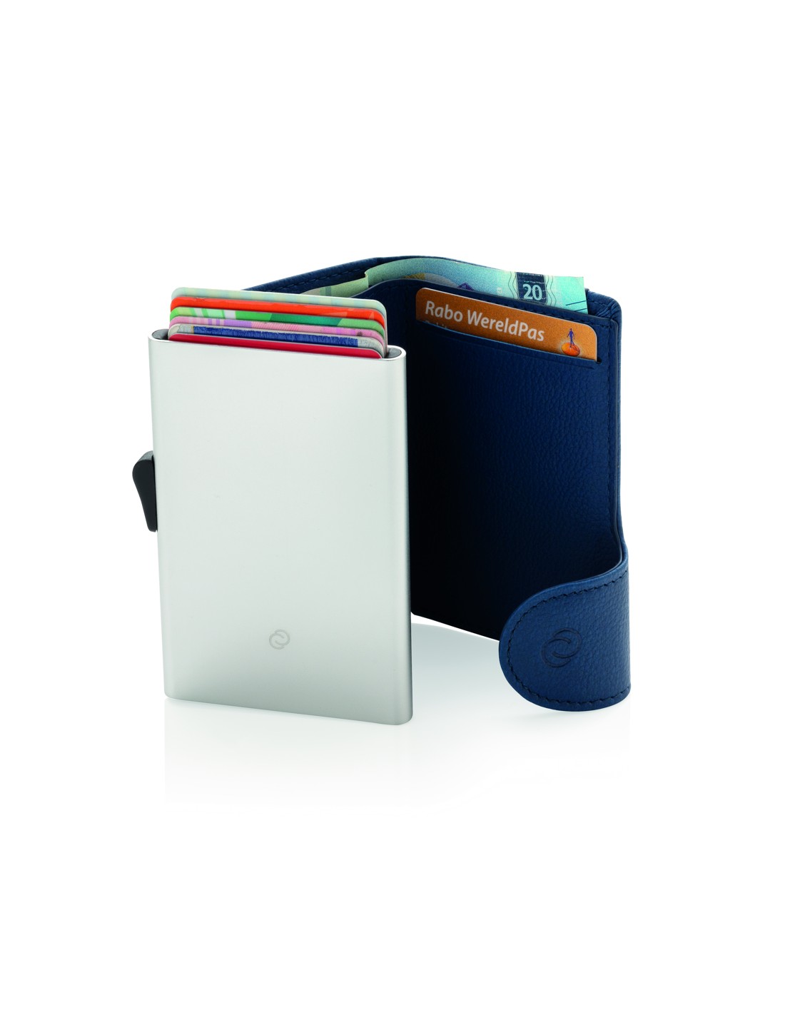 Questo resistente porta carte di credito in alluminio protegge ti dai tentativi di furto. Non avrai mai più carte rotte o spiegazzate. Può contenere fino a 7 carte standard o 5 carte goffrate. Grazie alla levetta laterale sarà facile far uscire gradualmente le carte. Utilizzalo anche come classico portafoglio.