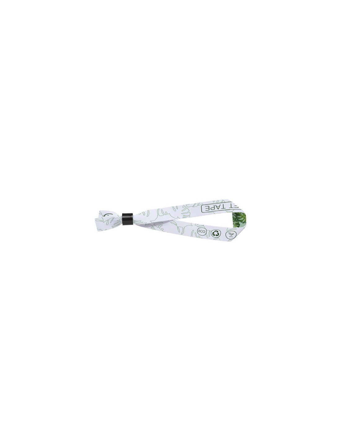 Braccialetto El per festival in PET riciclato con chiusura di sicurezza in PET riciclato. Disponibile con stampa full color su uno o due lati. Per stampa su due lati è possibile scegliere tra sublimazione standard o piazzata (piazzata significa che la stampa sarà allineata su entrambi i lati). Il gancio di sicurezza one-way impedisce che l'articolo venga rimosso, caratteristica che lo rende il pass di sicurezza perfetto per feste ed eventi.