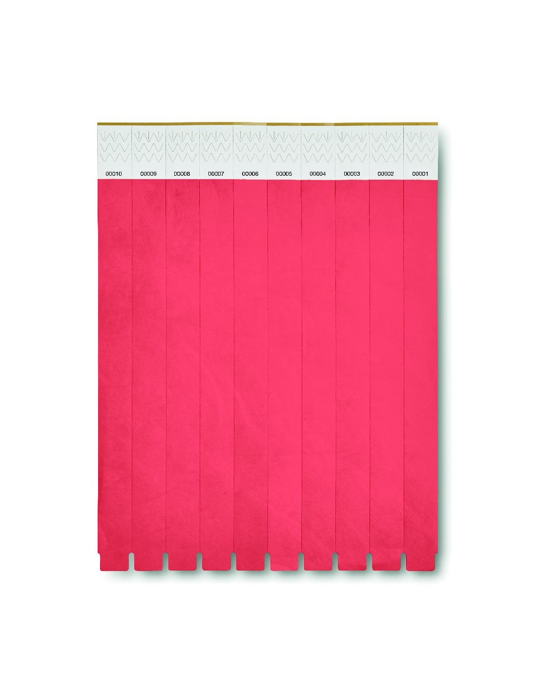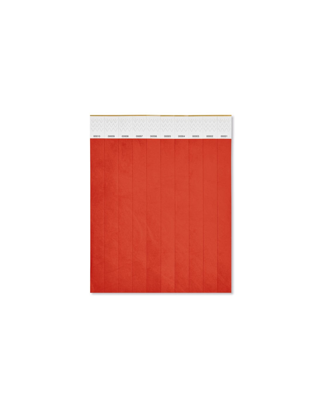 Un foglio di 10 braccialetti per eventi DuPont ™ Tyvek® . Larghezza 19mm. Ogni braccialetto è marchiato da un numero unico. Prodotto in UE.