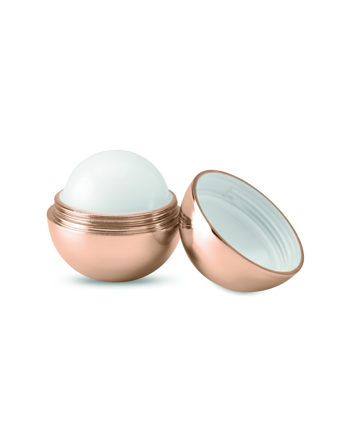 Burro di cacao a forma di pallina con finiture metalliche UV. Dermatologicamente testato. SPF10.Sapore: Vaniglia.