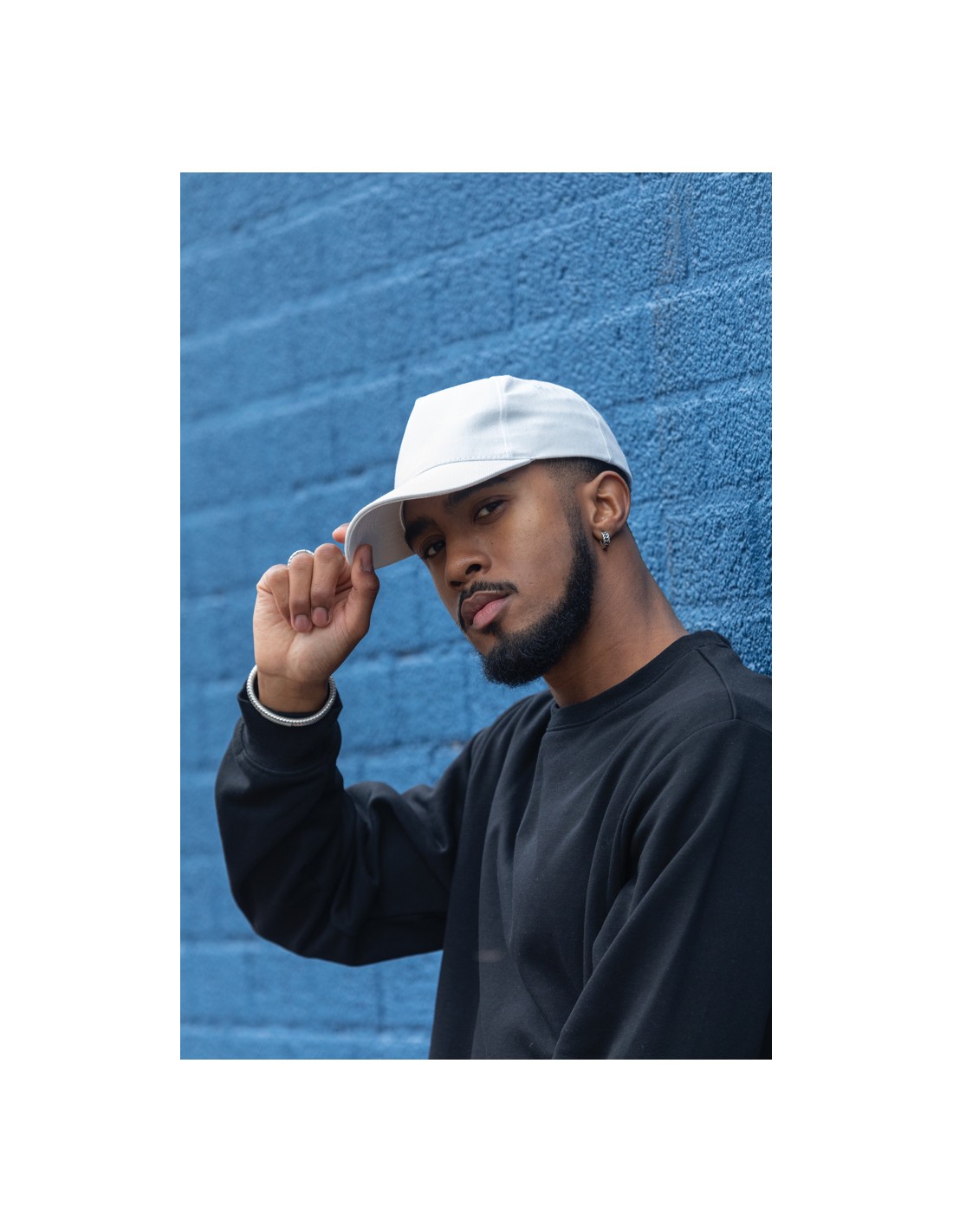 Cappellino a 5 pannelli in twill pesante spazzolato di cotone da 260 gr/m² con fibbia in acciaio argentato. 4 occhielli ricamati in tinta. Taglia 7 1/4.