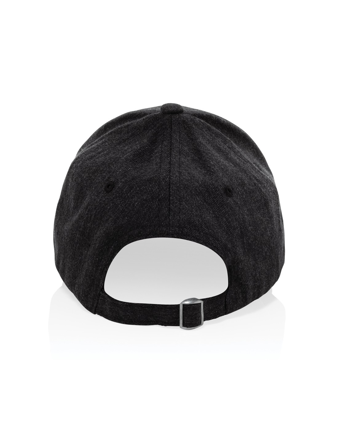 Cappello a 6 pannelli color melange Milo AWARE™. 70% cotone riciclato e 30% poliestere riciclato. Il berretto è dotato di chiusura con fibbia in metallo.