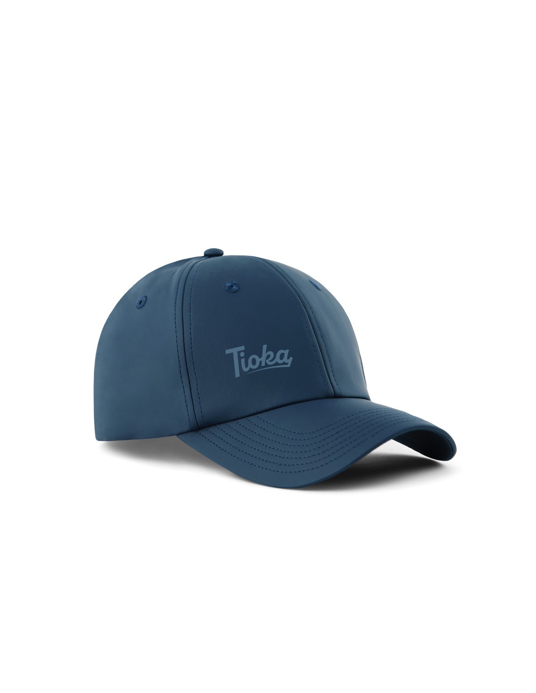 Cappellino promozionale ecosostenibile. Visiera sandwich precurvata. Asole ricamate per l'aerazione. Chiusura con fibbia e regolazione in metallo. Circonferenza 58cm.