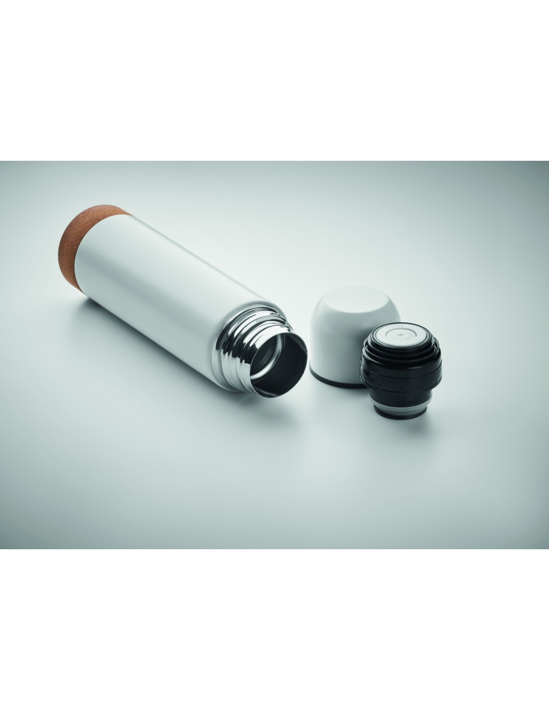 Thermos isolata sottovuoto a doppio strato in acciaio inox riciclato con base in sughero. Senza perdite. Capacità: 500 ml. (90% acciaio inox riciclato e 10% acciaio inox).
