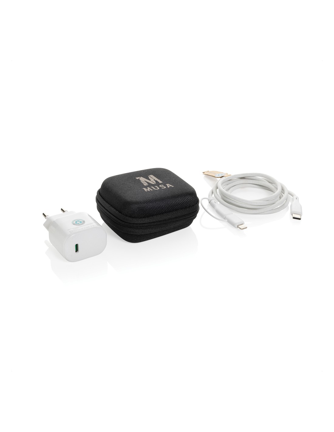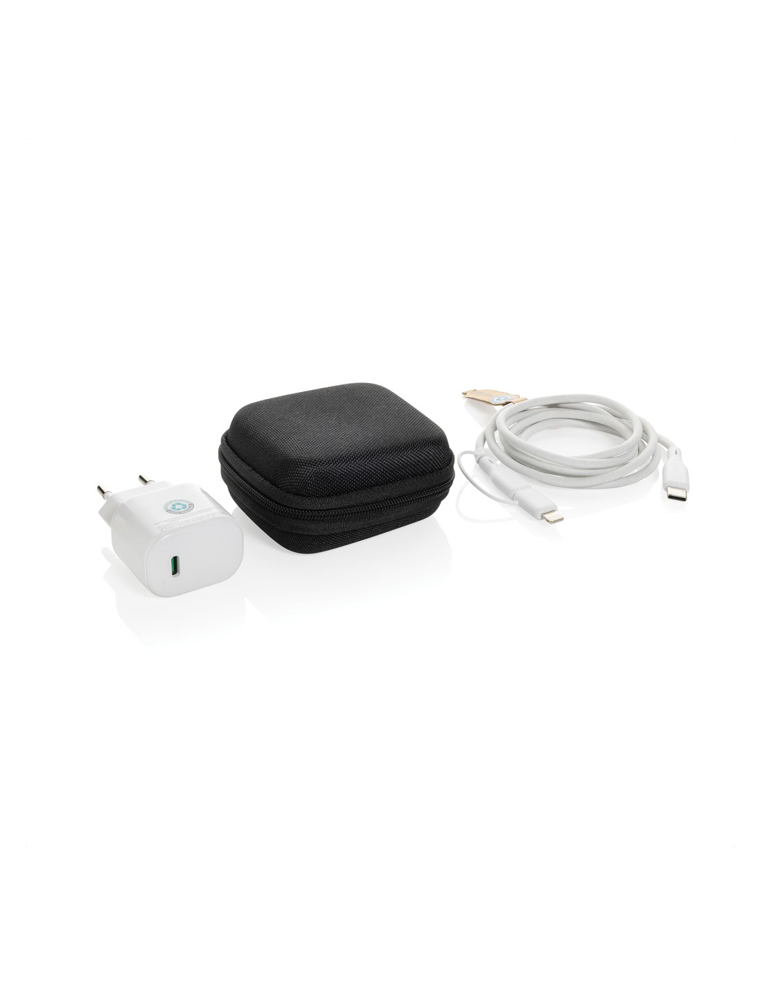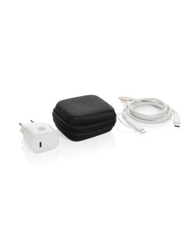 Questo set di ricarica compatto e portatile comprende un adattatore GaN da 65 W con tecnologia PD e prese intercambiabili (USA/UE/UK), un cavo di ricarica rapida 5 in 1 da 60 W in PET riciclato e una custodia realizzata con materiali riciclati. Perfetto per ricaricare più dispositivi, tra cui...