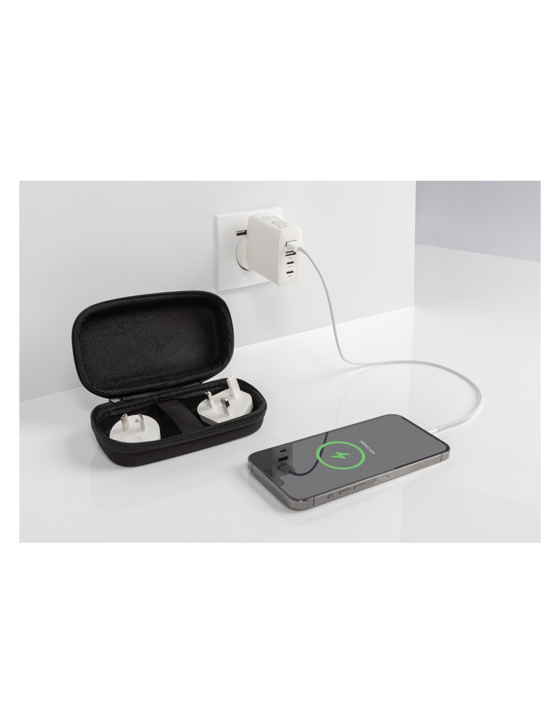 Caricatore PD da viaggio ultra veloce Philips con confortevole custodia. Include 4 diverse spine: una integrati per gli US e 3 intercambiabili per AU, UK e EU. Input: 100-240V, 50-60Hz 0.7A Output USB A 5V/2.4A type-C 5V/3A, 9V/2A, 12V/1.5A. Include scatola regalo Philips.