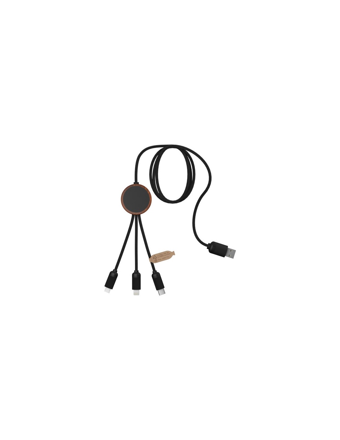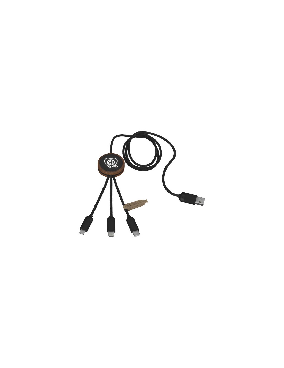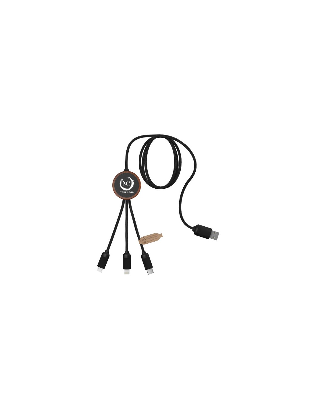 Cavo di ricarica 3 in 1 in PET riciclato con logo luminoso e custodia rotonda in bambù SCX.design C36