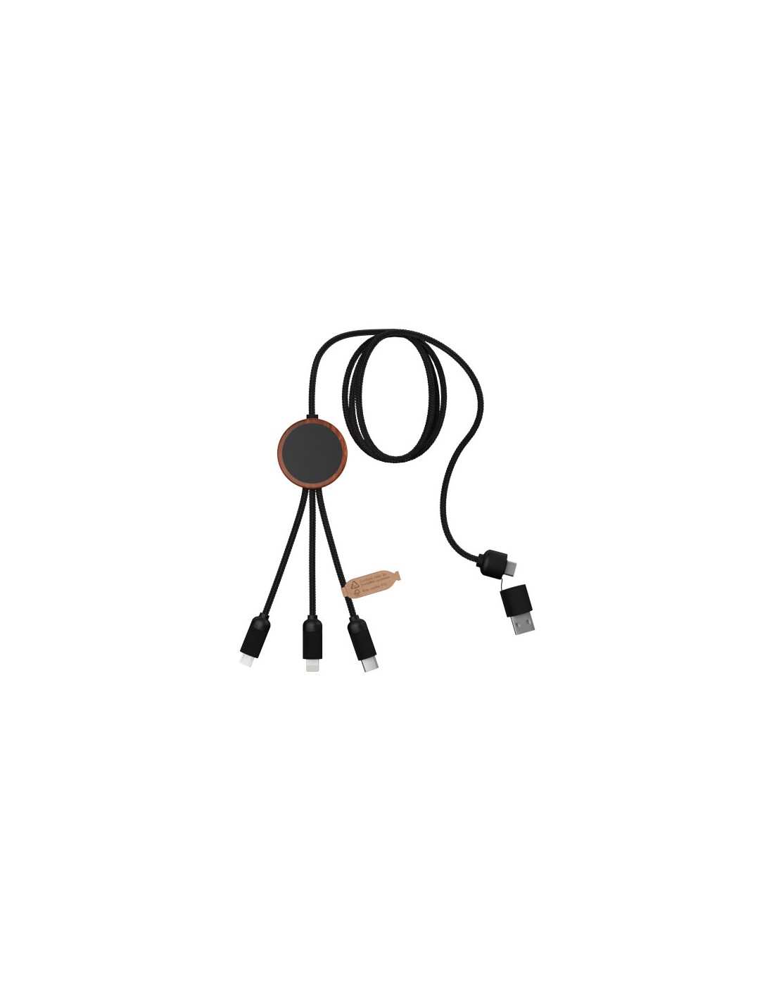 Cavo di ricarica da 40 W 5 in 1 in rPET riciclato con logo luminoso e custodia rotonda in legno SCX.design C37