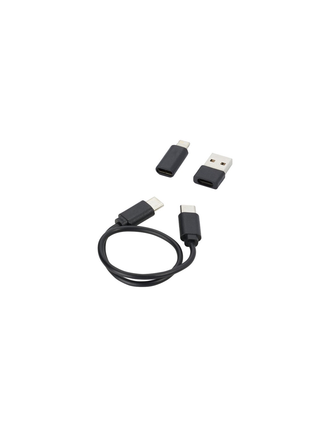 Cavo modulare per il trasferimento dei dati e la ricarica, realizzato in plastica riciclata e fornito in un'elegante confezione. Il cavo offre diverse soluzioni di ricarica: ingresso Tipo-C e USB-A e uscita Tipe-C/iOS/micro USB. Grazie a tutti questi adattatori e connettori, questo cavo consente di caricare la maggior parte degli smartphone, delle fotocamere, dei power bank, degli auricolari, ecc. Il cavo ha una potenza massima di uscita di 2 A. Dispone di un pin di espulsione che si rivela utile ogni volta che è necessario estrarre la scheda SIM del telefono. Il contenitore presenta anche uno spazio per conservare una scheda di memoria micro SD e una scheda nano SIM, rendendolo un accessorio perfetto per i viaggi. Lunghezza del cavo: 28 cm. Fornito in una busta di carta kraft riciclata al 100%.